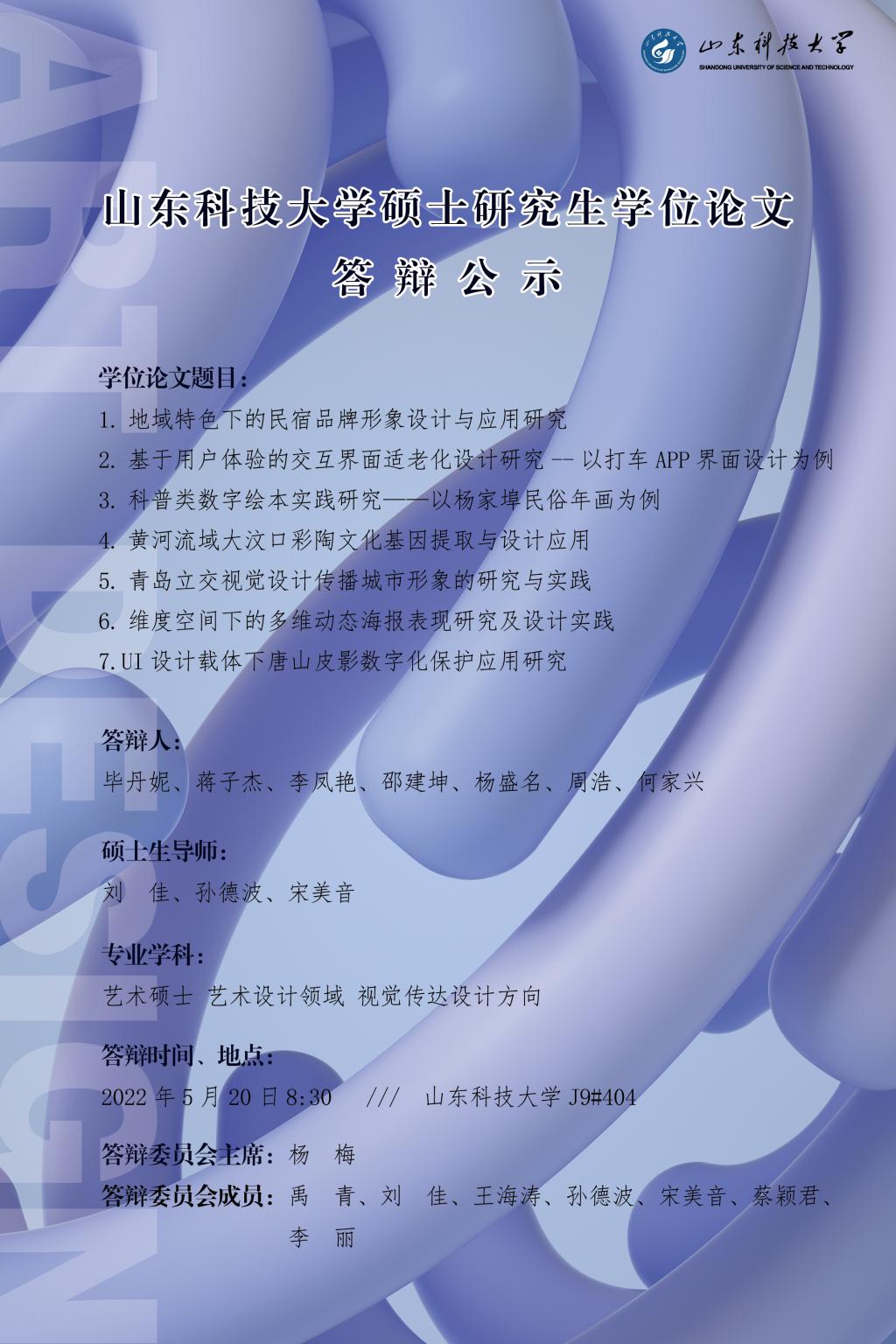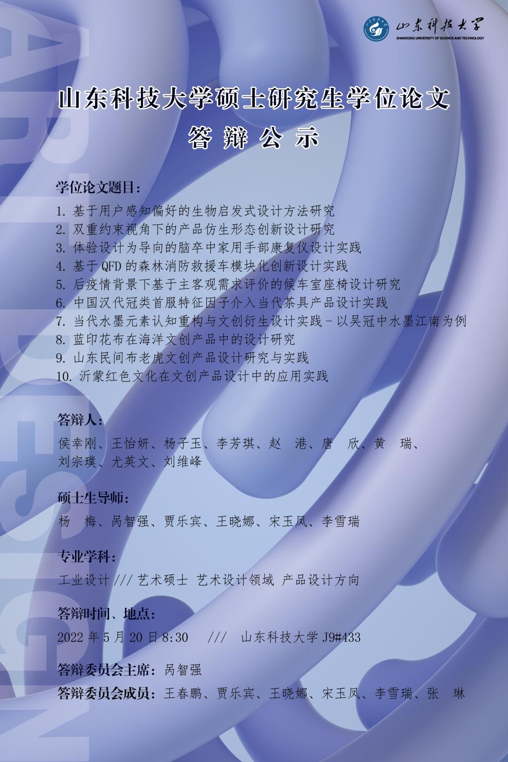 申博sunbet工业设计、艺术硕士(MFA)研究生学位论文答辩公告