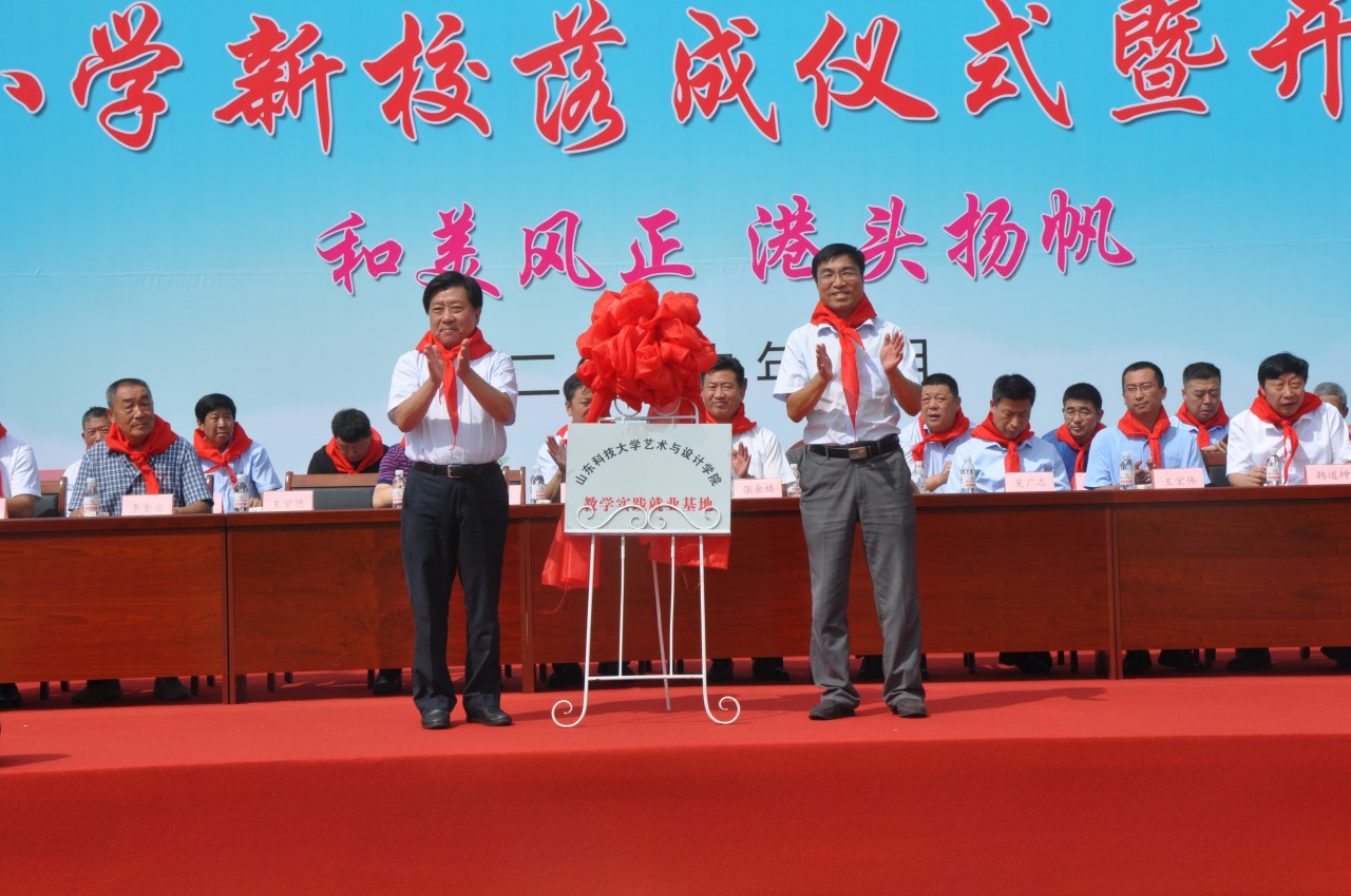9月4日上午,艺术与设计公司教学实践就业基地揭牌仪式在西海岸新区港头小学新校区启用庆典上举行。申博sunbet艺术与设计公司经理王宝德、黄岛区教育和体育局民管办主任田怀玉,共同为“申博sunbet艺术与设计公司教学实践就业基地”揭牌。