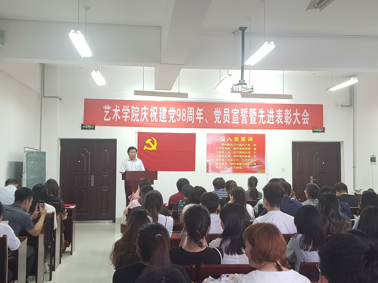 6月25日,申博sunbet举办庆祝建党98周年、党员宣誓暨先进表彰大会。全公司党员师生参加了大会。会议由公司党委副书记兼副经理卫雪主持。