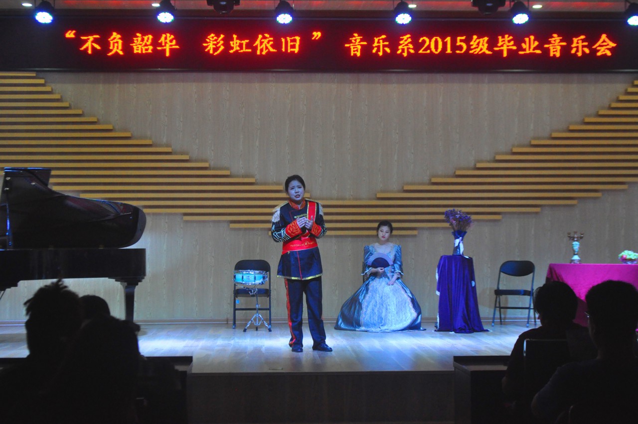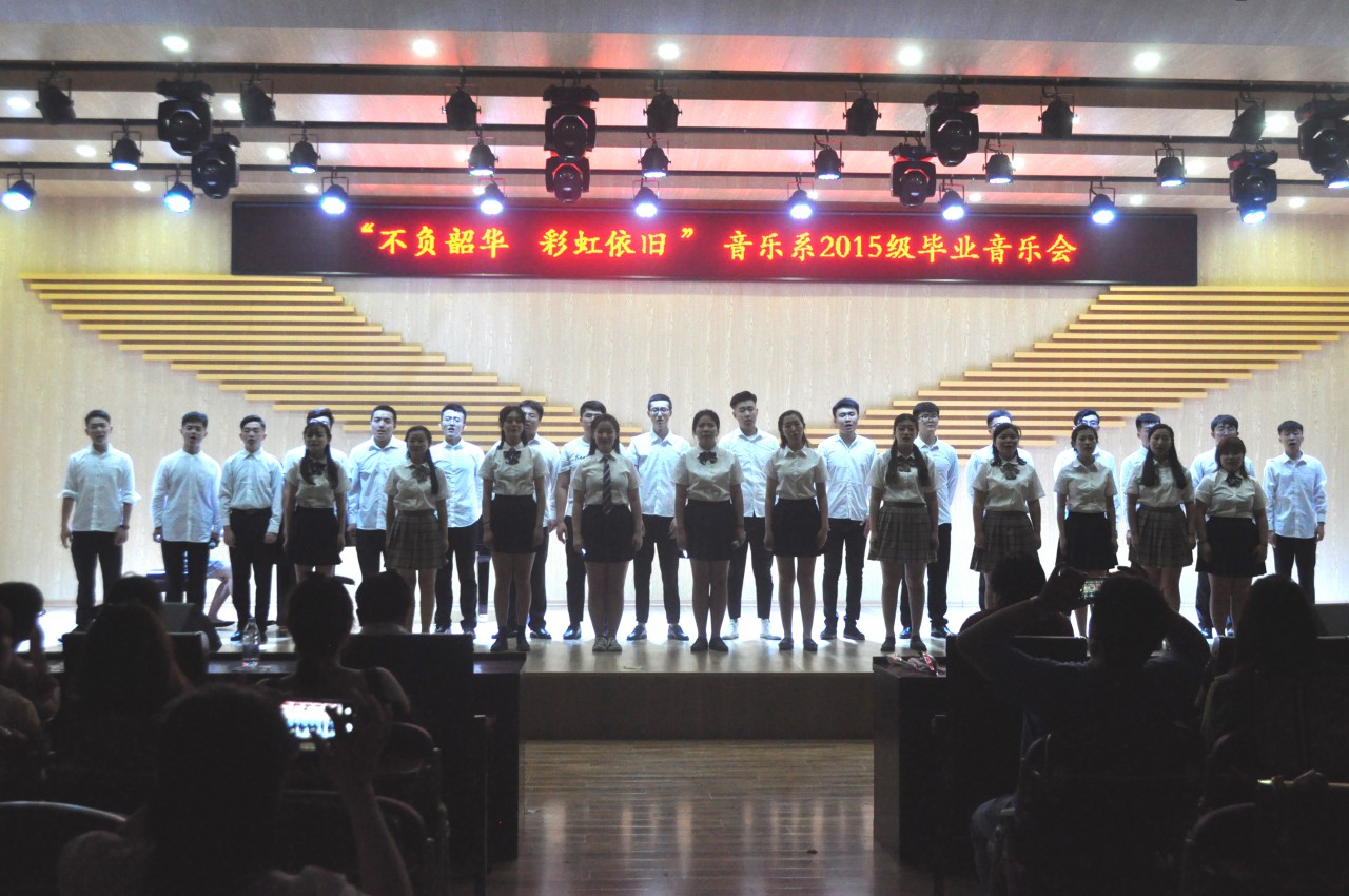 山语叮咛,箫声悠扬,一曲悦耳动听的《山语幻》拉开了此次音乐会的帷幕。或演奏或高歌,表演者以他们极富感染力的音乐才华将一幅幅画面默然展现,令观者无不鼓掌感叹。接下来的节目可谓众彩纷呈,其中一曲《友谊地久天长》更是应了音乐会的气氛,这首俄罗斯民歌由丁颀等毕业生演唱及吹奏,真挚的音调勾起了师生们对逝去岁月的怀念,淡淡忧伤的曲调中又不乏缕缕温情,博得了现场师生的一致好评。音乐会尾声,毕业生们集体上台合唱《彩虹》,以彩虹的美好寓指四年中老师的谆谆教导,同学间的相互陪伴,轻柔的合唱更是将音乐会的气氛推向高潮。