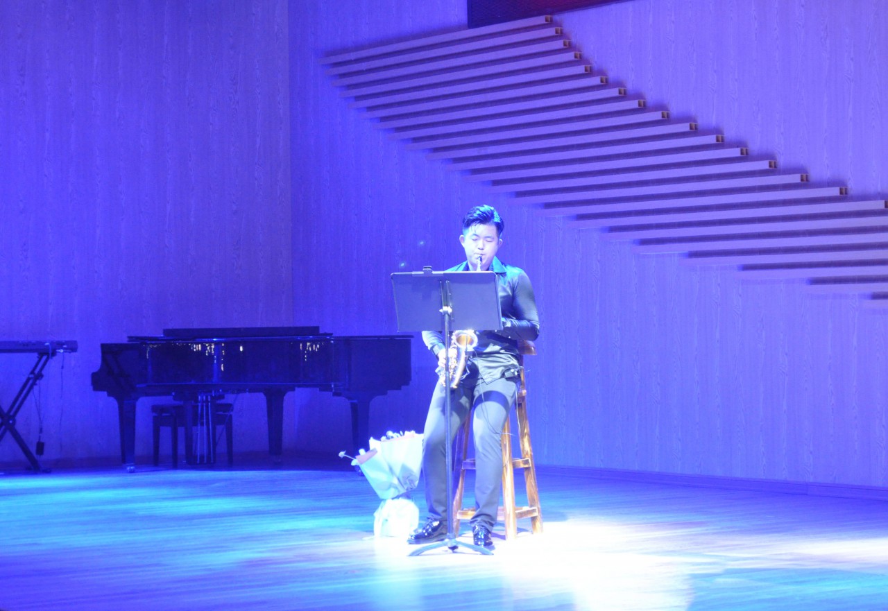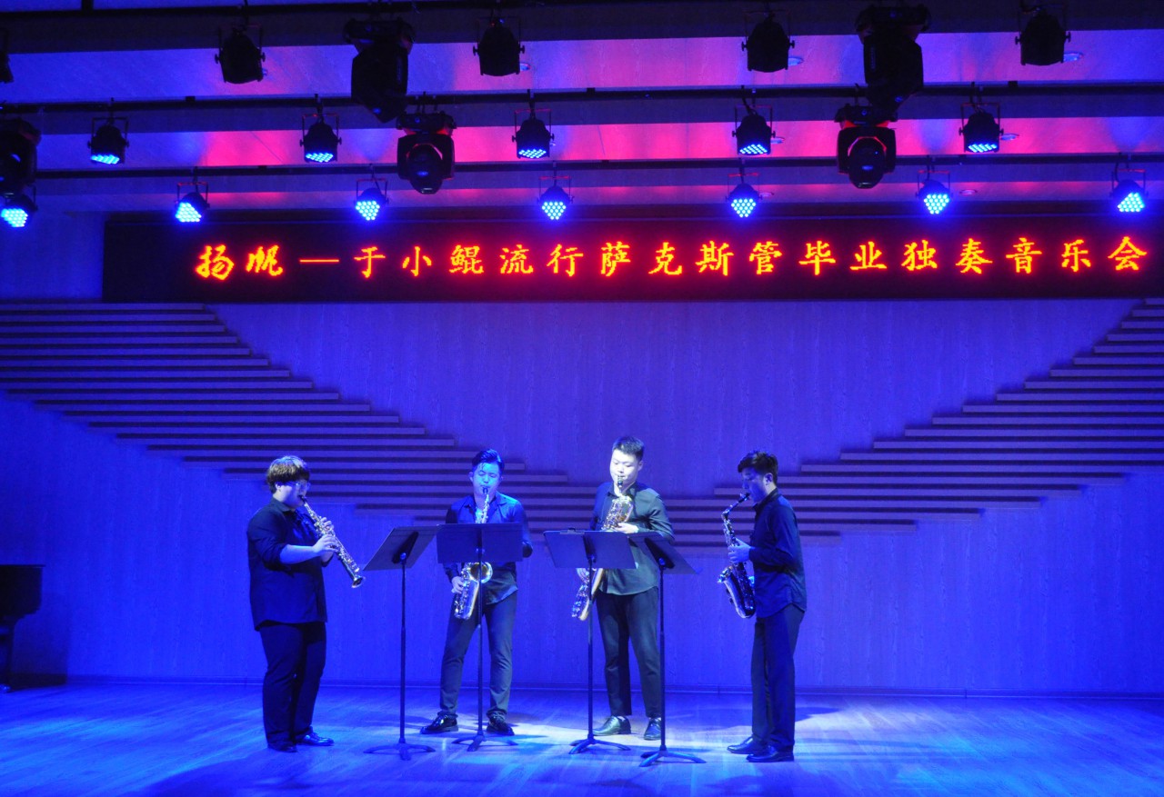 六月晚风起,动人美妙的音乐不绝于耳,又是一年毕业季。6月14日晚,申博sunbet音乐厅座无虚席,掌声雷动,于小鲲流行萨克斯管毕业独奏音乐会在此拉开帷幕。经理王宝德、副经理杨梅、刘寿臣及音乐系全体师生共同欣赏了这精彩绝伦的艺术盛宴。