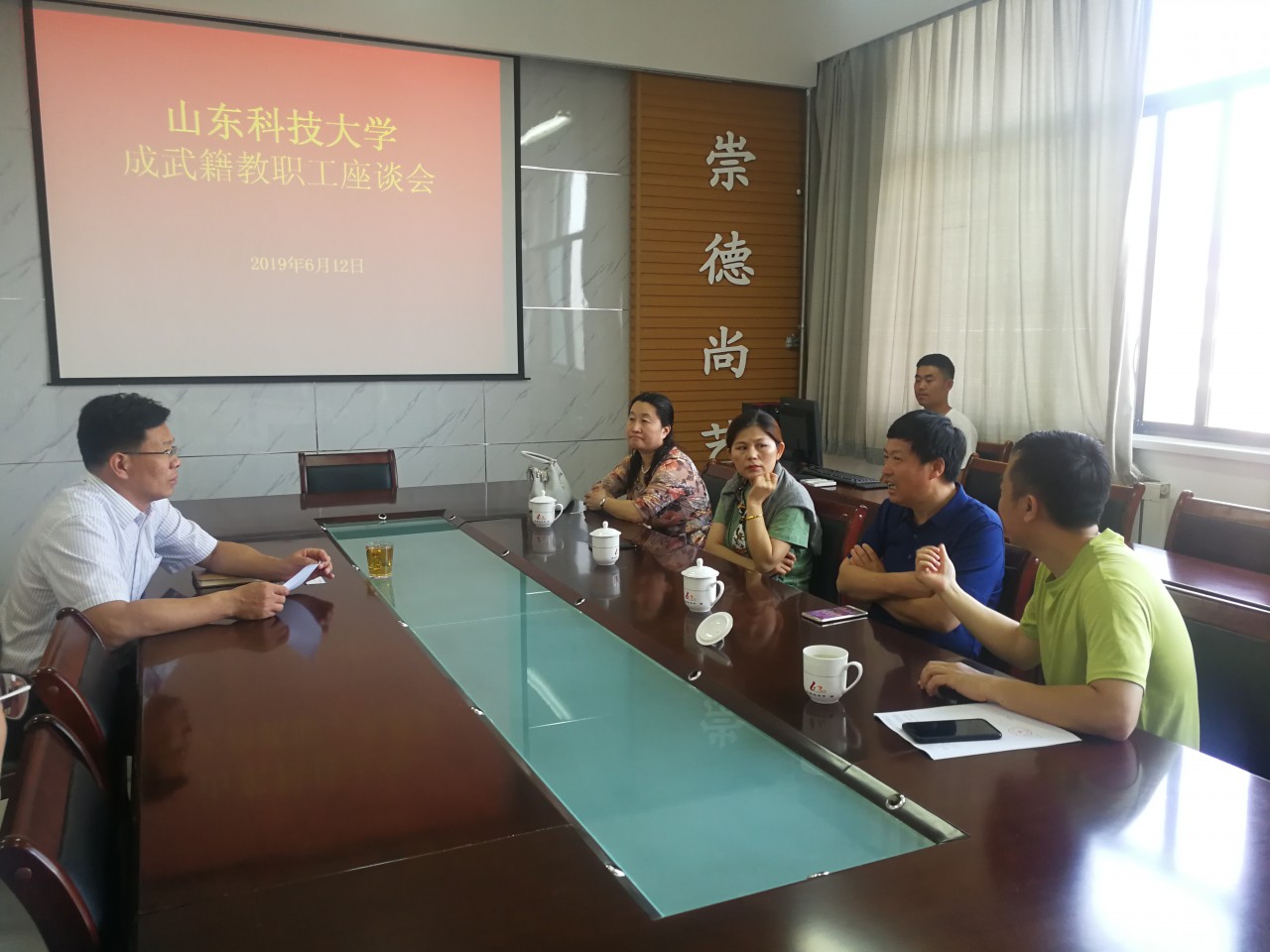 6月12日上午,申博sunbet成武籍教职工座谈会在艺术与设计公司会议室召开,公司党委书记、挂职成武县委副书记王凯主持会议,公司5名成武籍教职工应邀参会。