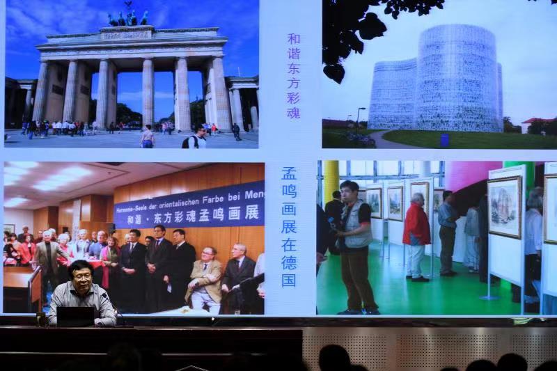 孟鸣教授、硕士研究生导师,中国美术家协会会员,山东美术家协会理事、副秘书长,山东水彩画会副会长,曾多次在德国、奥地利等举办个人画展、讲学并赴欧洲多国考察写生。本次讲座,他从中西方文化解析、欧洲美术以及欧洲古镇赏析等方面从艺术的角度进行了分析和解读。他以故事性的讲解形式,结合他在欧洲的写生创作,把我们带入了欧洲,走进了欧洲艺术,共同体验了西方美术的魅力,是一次丰富多彩的艺术盛宴和非凡的旅行。