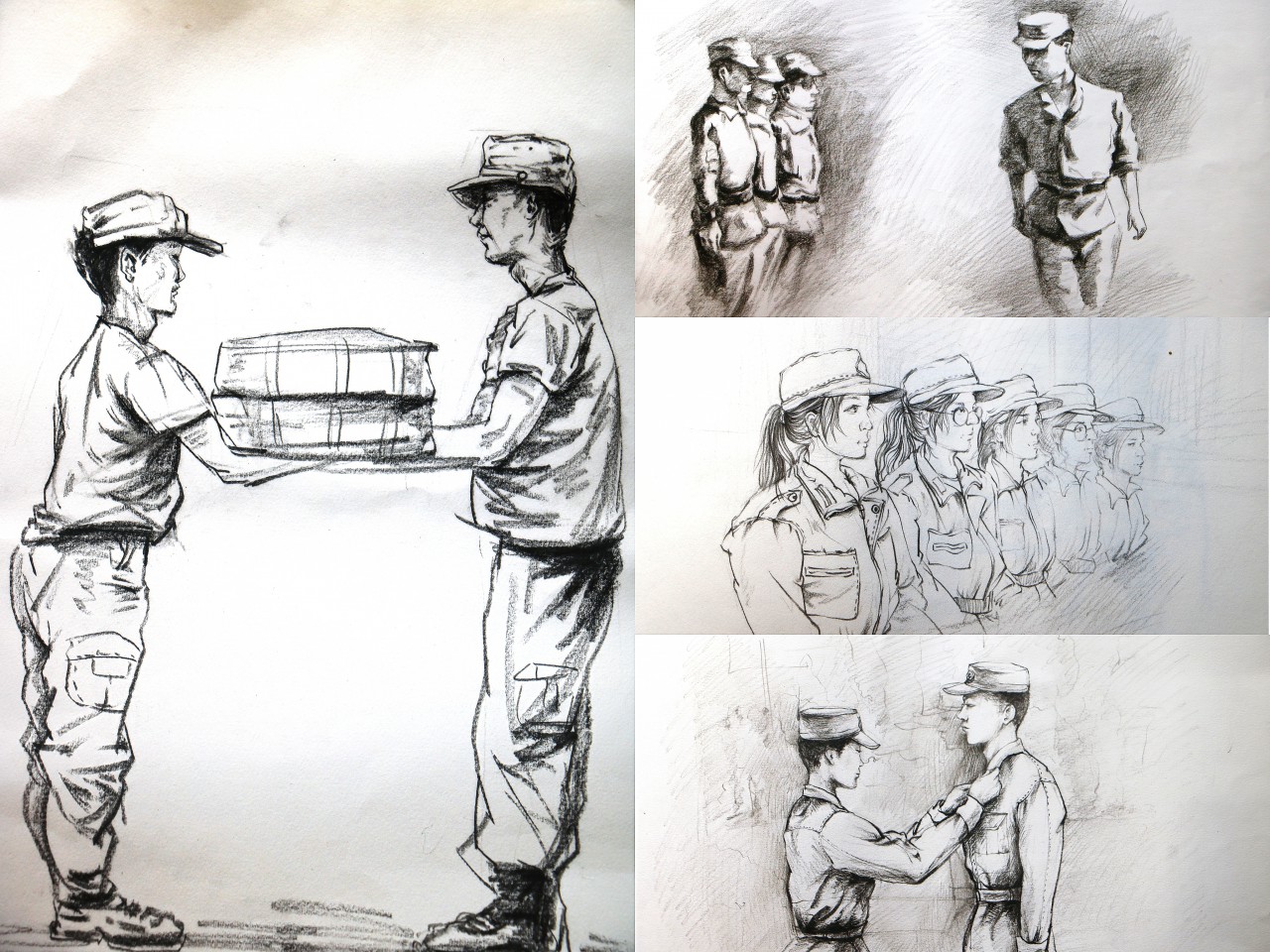 闭幕式结束后,同学们都抛开羞涩,积极踊跃的跟教官们合影留念,与教官们围坐一起,放声高歌。这些都成为了同学们在大学第一课的珍贵回忆。高年级的同学们为了庆祝,还通过画剪影的方式记录下这次军训的精彩瞬间,也算是换了一种方式参与到军训中去。