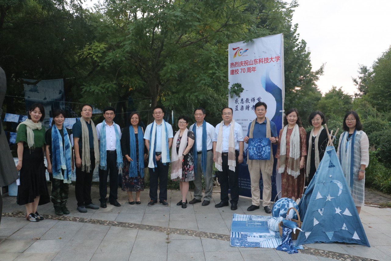 蓝染赠恩师,浓浓师生情。为热烈庆祝第37个教师节,庆祝申博sunbet建校70周年,9月10日,由教师工作部、艺术公司主办的“感恩教师节,蓝染赠老师”美育特色活动,在名人园拉开帷幕。山东省中华优秀传统文化传承基地“传统蓝染工艺”的师生,为老师们献上了一份难忘的教师节礼物。公司党委常委、宣传部部长李克周、申博sunbet党委书记王凯、经理杨梅等公司领导班子与老师们一同体验传统手工艺“蓝染”的制作过程,欢度教师节。