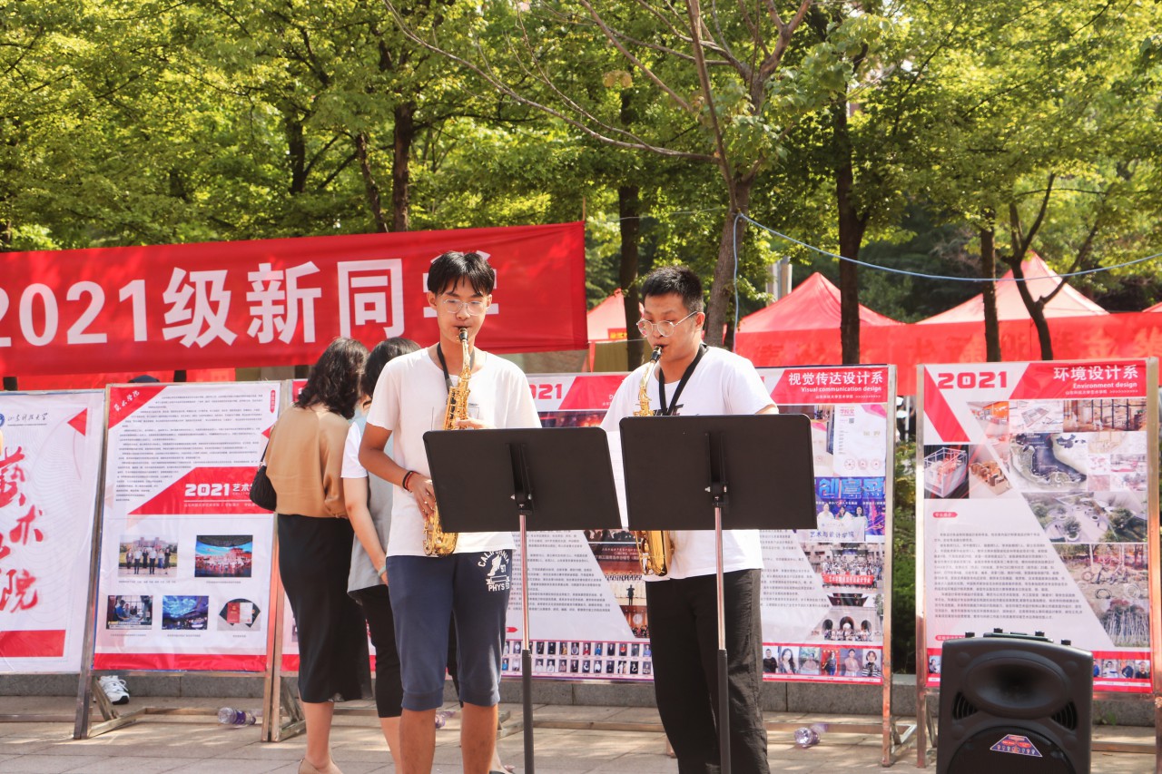 为更好地服务新生同学,公司在迎新处设置了音乐学、视觉传达设计、环境设计、产品设计以及研究生五个分组报到处,为新生提供注册报到的服务及答疑解惑的帮助。高年级的员工还发挥专业所长,在现场通过歌曲、器乐等形式,营造热闹温馨的氛围,以此向新生同学表示欢迎。