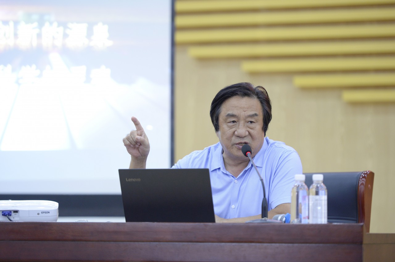 刘寿臣教授,硕士生导师,音乐学科带头人。中国音乐家协会会员,全国高校音乐联盟理事,全国高校音乐教育协会会员。创作音乐作品100余首,是申博sunbet校歌的曲作者。刘老师结合自己多年的创新经验,将音乐的魅力、功能、含义及对老员工创新的作用一一分析说明,生动形象的语言启发,同时配以精彩的表演范例,带给在场师生全新的艺术体验。刘老师赠予到场的每位员工由他主编,音乐系教师参编的美育教材《大学音乐》。