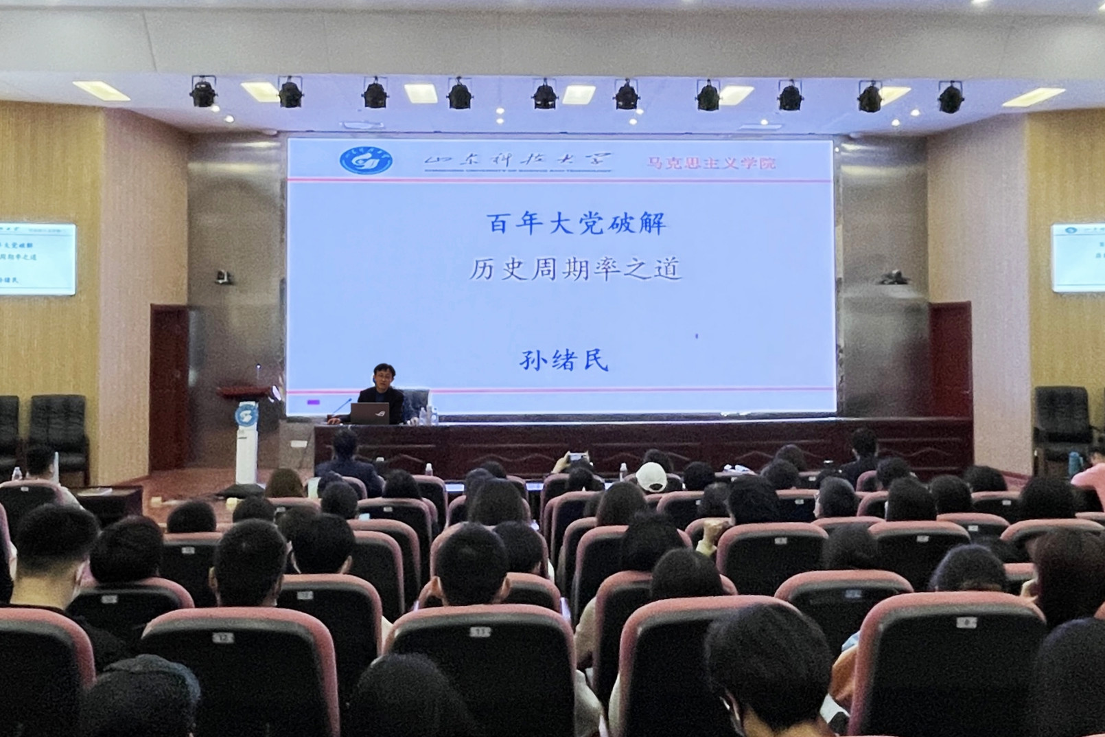 会上孙绪民从历史周期率的缘起讲起,重点讲解了中国共产党寻找破解历史周期率的道路和措施。中国共产党通过不懈的探索,找到了跳出治乱兴衰周期率的成功道路。党始终站坚持以人民为中心的立场,实行民主监督,开展刀刃向内的自我革命,这是能够跳出历史周期率的关键之道。孙绪民从思想认识层面、制度保障层面、现实层面分析了中国共产党如何破解历史周期率。