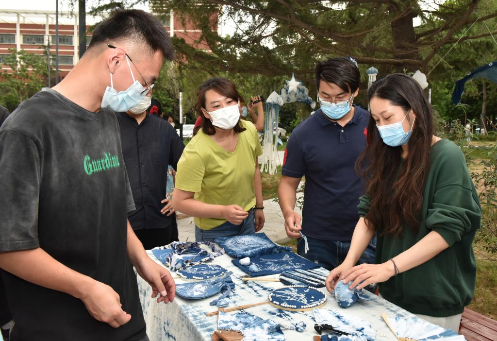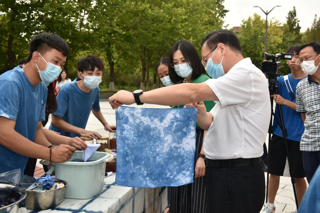 “能参与本次蓝染体验活动真是太好了,‘以员工为师’是一种不同于平时相处的独特体验。能在课堂之外、教学之余与同学们一起动手制作蓝染方巾,是我在今年教师节收到的最美好最独特的礼物。”“最美教师”刘春晖如是说。