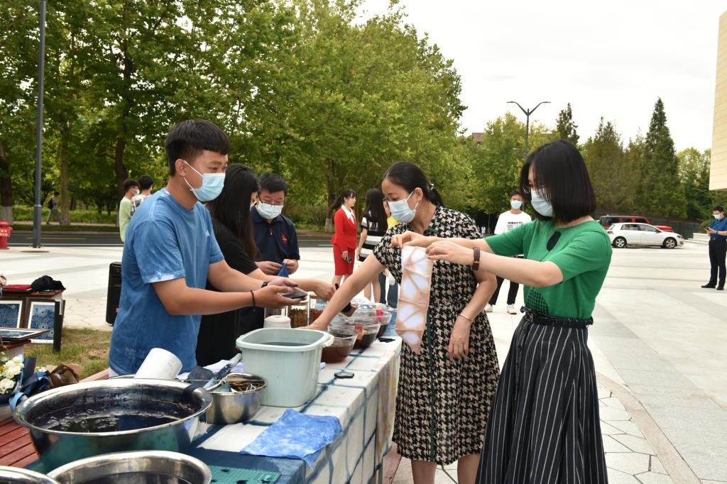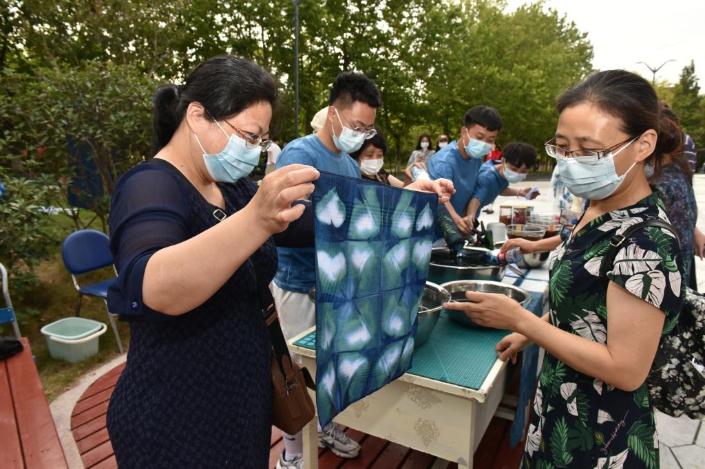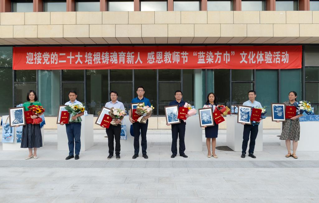 活动现场,员工代表向“最美教师”“教书育人楷模”献花,与他们一起制作蓝染方巾,为教师们奉上最美的节日祝福。山东省中华优秀传统文化传承基地“传统蓝染工艺”的师生在活动现场布置了不同主题的蓝染作品,吸引师生们驻足欣赏。
