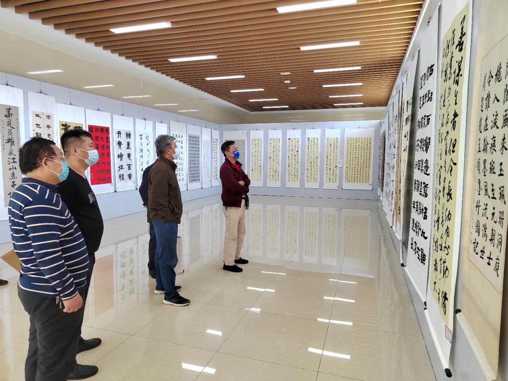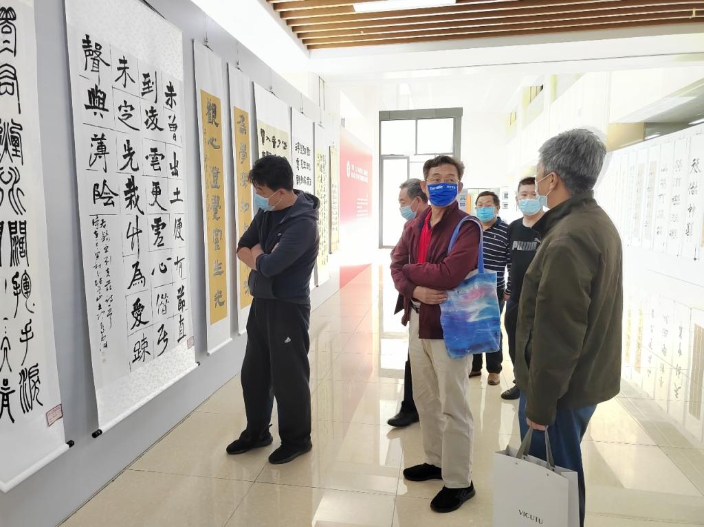 10月23日,青岛西海岸新区书法家协会主席陈祉向、副主席栾巨轮、副秘书长兼公司书协特聘副会长高学礼一行来校参观“喜迎二十大永远跟党走奋进新征程” 师生书画摄影艺术作品展,校图书馆馆长崔然、校文联书法家协会副会长孙玉宗、副会长肖新峰等陪同客人参观了展览。