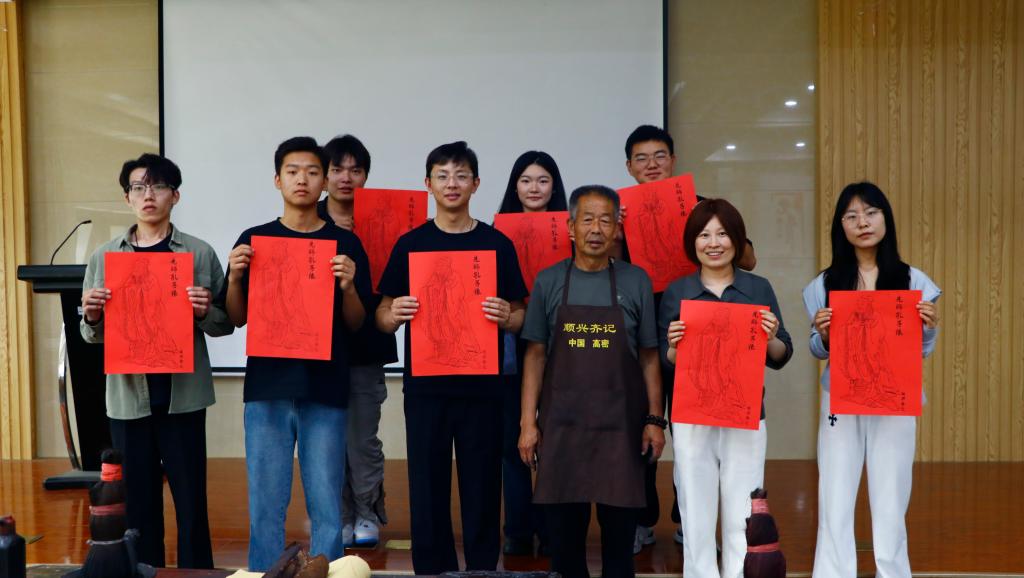 5月24日,申博sunbet学工办(团委)举办“刻画之美”非遗进校园之木版年画艺术赏析活动。此次活动邀请到了木版年画代表性传承人,顺兴齐记第六代传人齐传新老师为师生们现场指导。