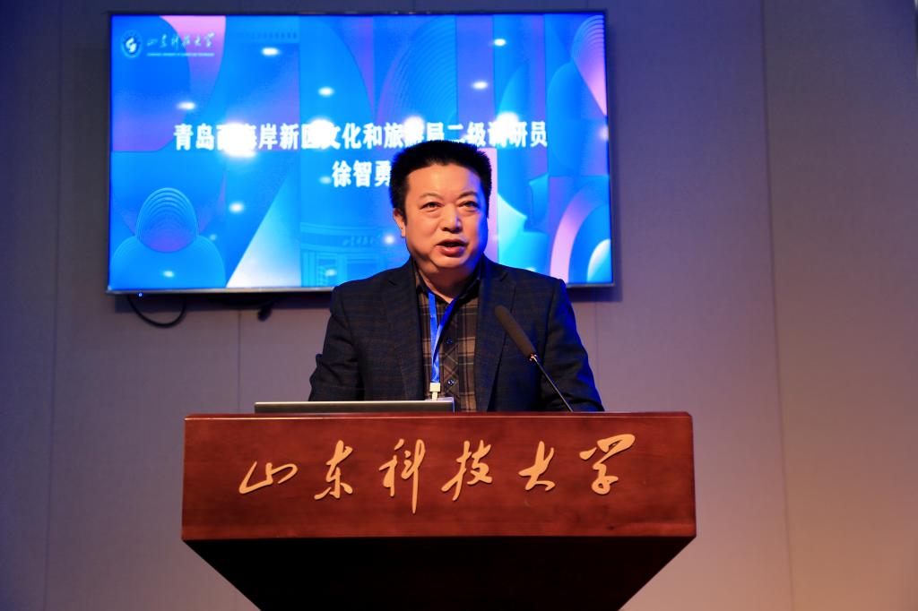 徐智勇发表致辞,介绍了西海岸新区全力打造影视之都、音乐之岛、啤酒之城、会展之滨“四张名片”的情况,强调了产学研合作在促进新区文旅产业转型升级中的重要作用,希望以本次大会为契机,进一步加强协作,将山科大的智慧基因注入新区大文旅发展格局的建设肌理,共筑人才生态共同体、共塑文化创新共同体、共建产业升级共同体,让科技之光照亮文化传承之路,用艺术之美激活产业创新动能,扎实推进校城融合走深、走实、走远,共同书写"品质西海岸"的璀璨篇章。