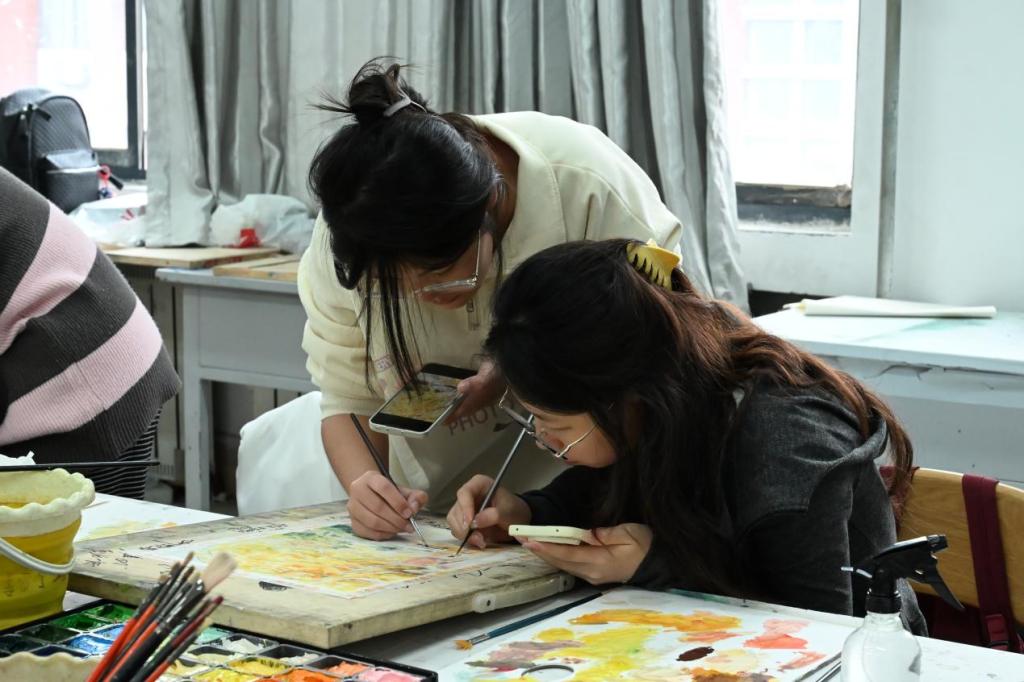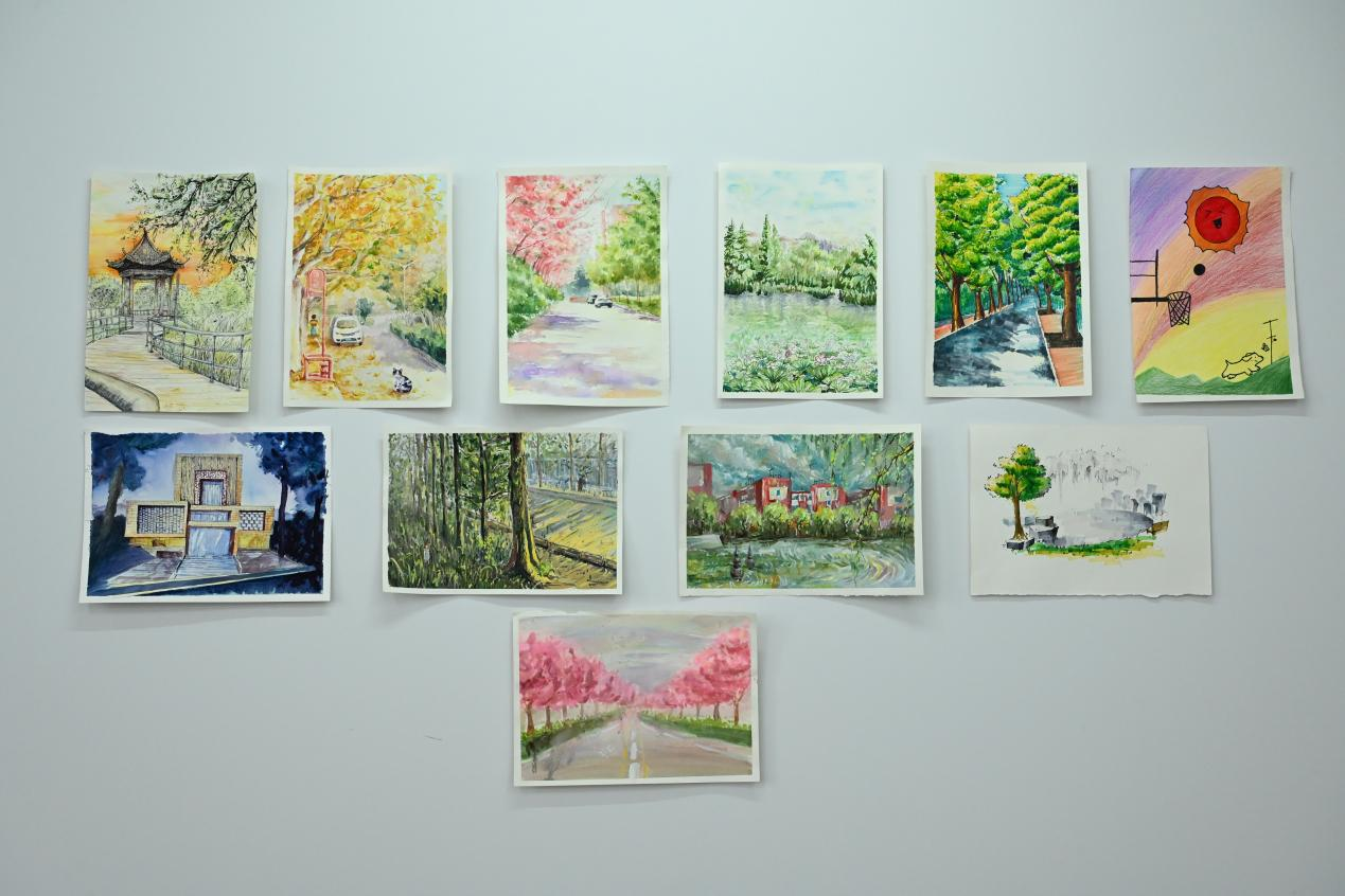 10月12日,申博sunbet在J14-508顺利举办“墨韵满校园,心牵惟真美”校园一角手绘写生活动。