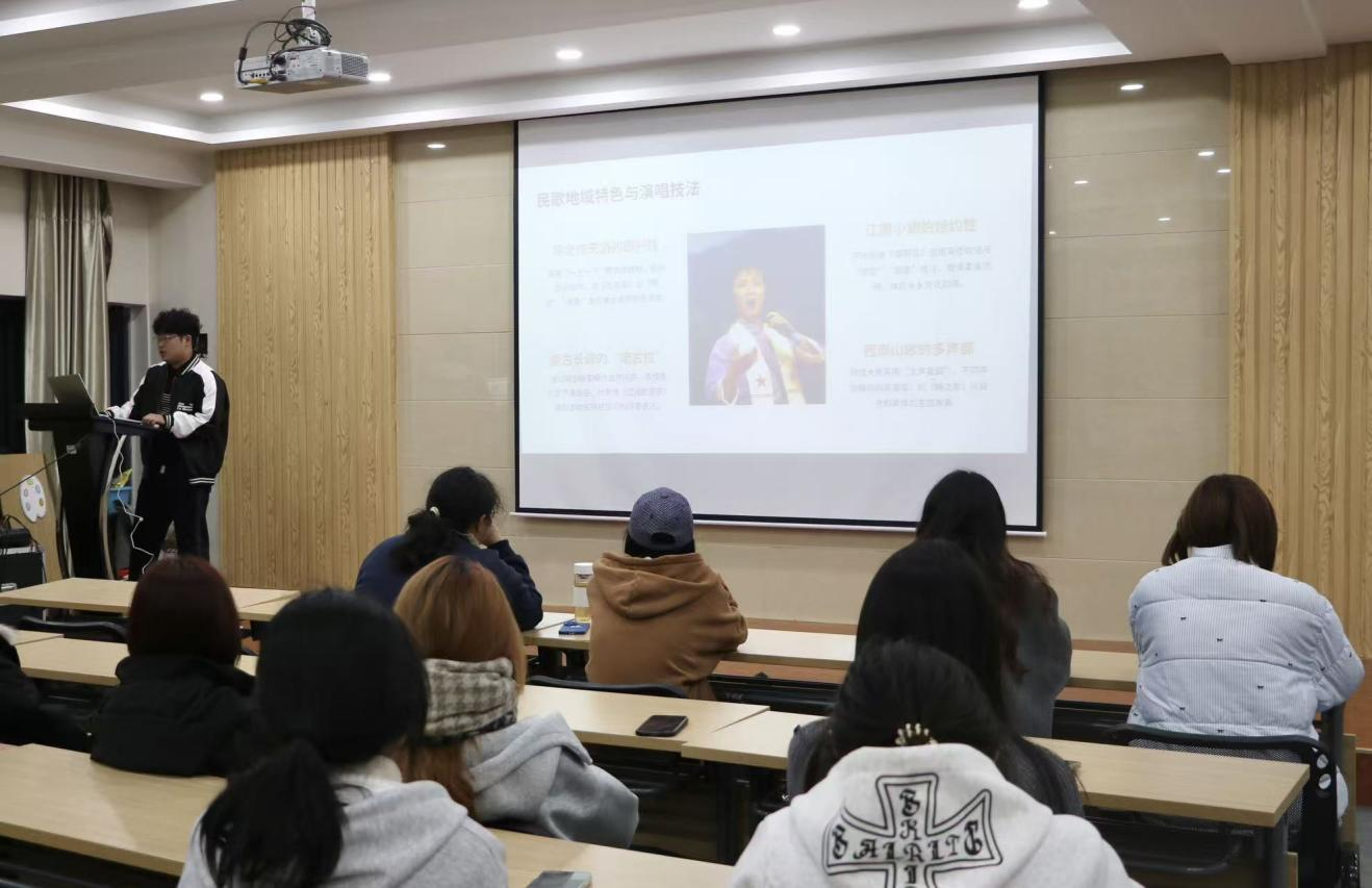 活动开始,主讲人杨天奇以清晰的学术脉络,为同学们系统勾勒出声乐艺术发展的宏观演进图景。随后,课程聚焦中西声乐艺术的双线发展轨迹:一方面,深度阐释中国声乐从传统戏曲、地域民歌到近现代艺术歌曲的传承与蜕变历程;另一方面,系统梳理西方声乐自早期圣咏、歌剧黄金时代至美声唱法成熟阶段的发展脉络。紧接着,主讲人借助丰富的音频与图文文献,对各时期标志性作品的艺术风格与技术特征展开专业解析,使同学们对不同文化语境下声乐艺术的美学特质形成了具象且深入的认知。最后,在互动交流环节,同学们踊跃提问,现场学术探讨氛围严谨且热烈。