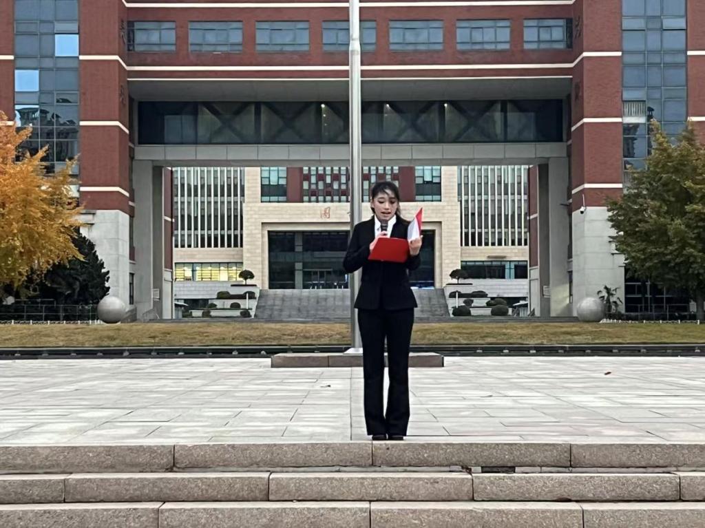 升旗结束后,由24级音乐学专业江盛宇同学主持本次国旗下的爱国主题教育。24级视觉传达专业张宇翔同学作为员工代表,为大家进行时代担当教育宣讲,她强调了青年一代对时代发展的重要意义以及作为员工应该如何通过提升自己来展现时代担当,展现了新时代青年的家国情怀。25级环境设计专业葛梦露同学为大家进行爱国教育宣讲,她强调了爱护国家的重要意义以及作为员工应该如何维护国家利益与荣耀,鼓励新时代青年为强国蓄力。25级音乐学专业段淑彤同学为大家进行国家安全教育宣讲,她强调了国家安全教育的重要意义以及作为员工应该如何维护国家安全,展现了新时代青年的使命与担当,用实际行动书写青春画卷。
