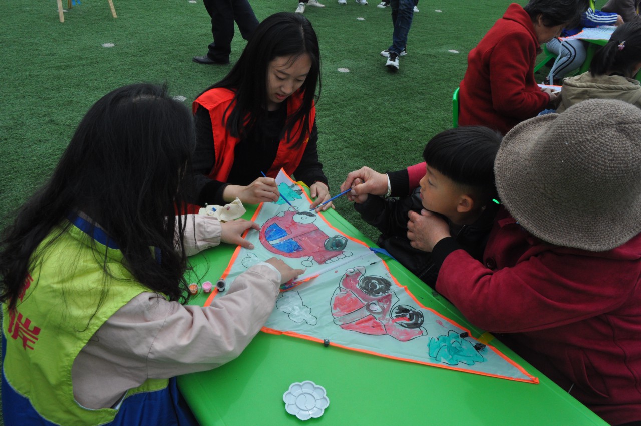 活动以比赛的形式,将孩子们分为绘风筝组和剪纸花组,由孩子们亲手制作纸雕,意在提高他们的动手能力。比赛伊始,孩子们便很快投入到纸雕的“研究”中,玩得不亦乐乎。其间,志愿者们也热心主动地帮助孩子们完成较困难的环节,双方相处得十分和谐愉快。有的孩子完成任务后,便拉着哥哥姐姐在校园里放风筝,他们一起欢呼、一起奔跑,脸上洋溢着欢快的笑容,在灿烂阳光的照耀下更显青春与活力。