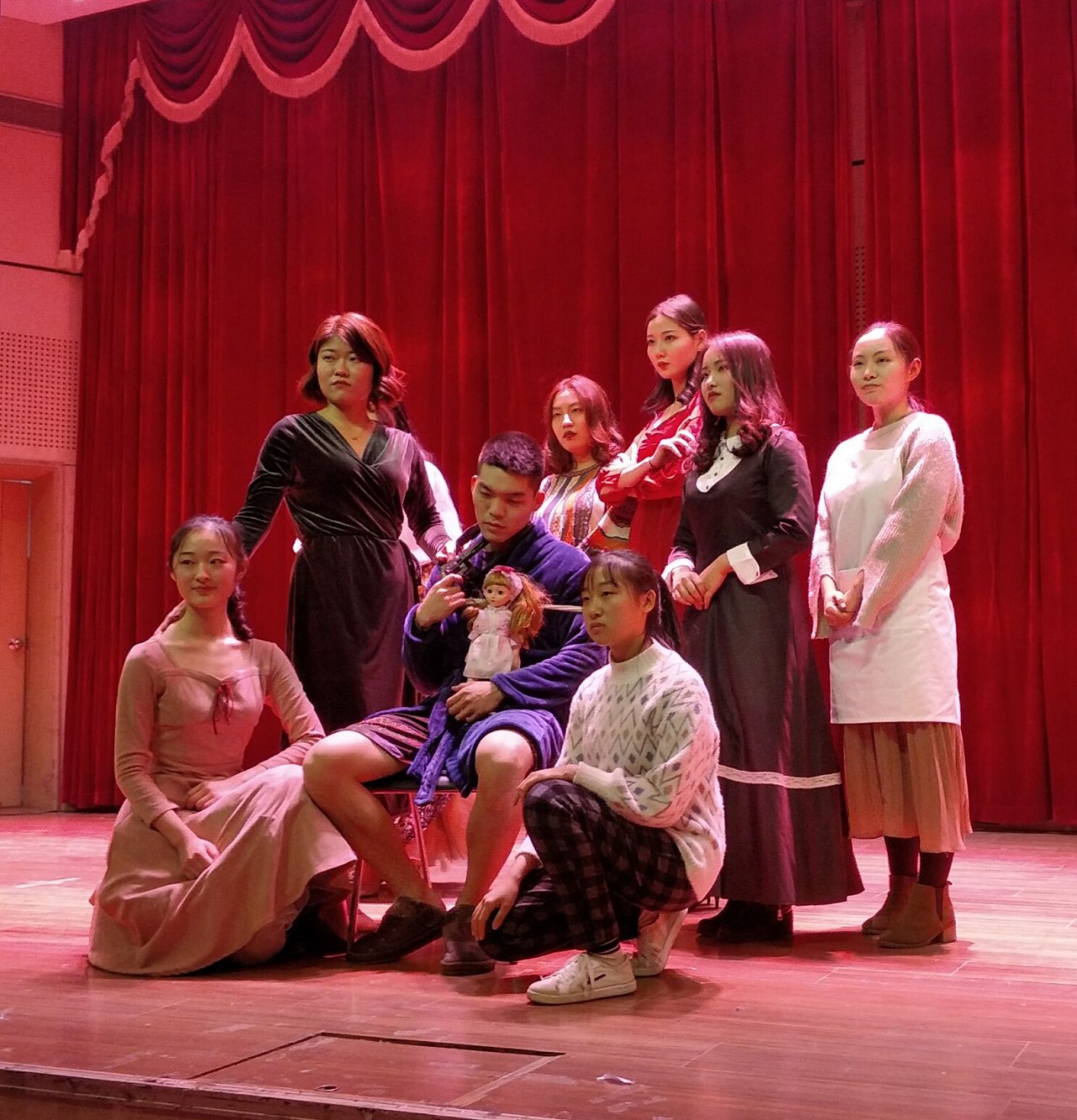 12月9日晚,大活二楼的舞台上,十位演员惟妙惟肖的表演,赢得了在场观众经久不息的掌声,台上的十人正是话剧《八美图》的八位主演。此次演出由申博sunbet红衣坊话剧团主办,由话剧团成员们历时47天自导、自演改编而成。