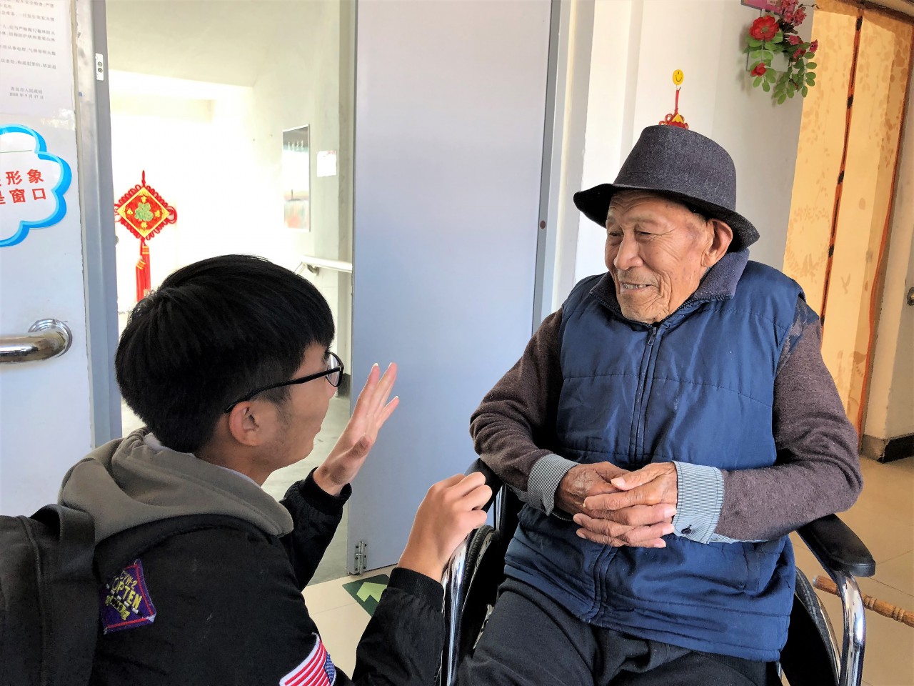 “听吧新征程号角,吹响强军目标召唤在前方,国要强,我们就要担当……”音乐系志愿者的一曲《强军战歌》声音嘹亮、振奋激昂,赢得老人们此起彼伏的掌声。随后同学们又联袂为老人们奉上了《英雄赞歌》、《大海啊,故乡》、《莫斯科郊外的晚上》等耳熟能详的歌曲,老人们跟着哼唱起来,现场氛围一片祥和,铿锵有力的节拍声久久回荡在走廊之中。表演结束,同学们向老人们分享老员工活的喜怒哀乐,老人们也通过讲述自己的光辉岁月来激励和教育同学们继续努力,在未来的人生道路上奋发图强。