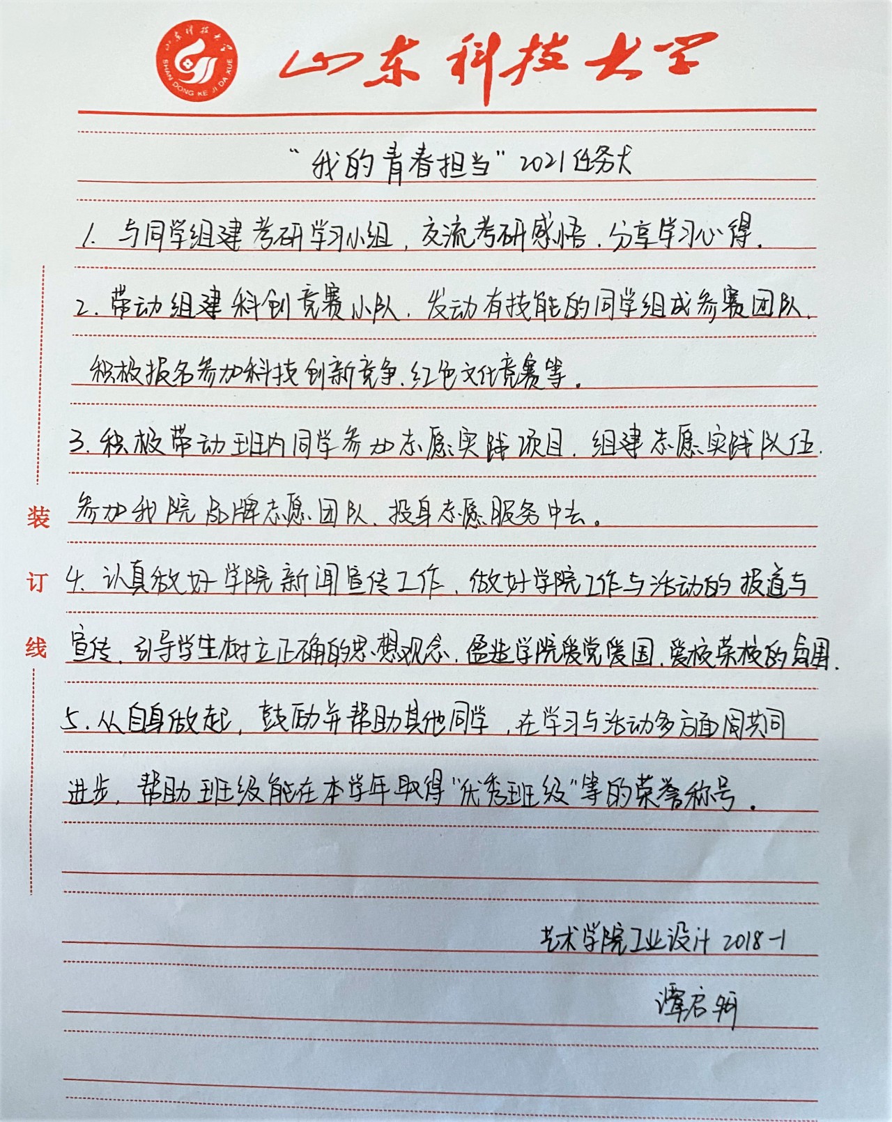 “我的青春担当”2021任务卡
