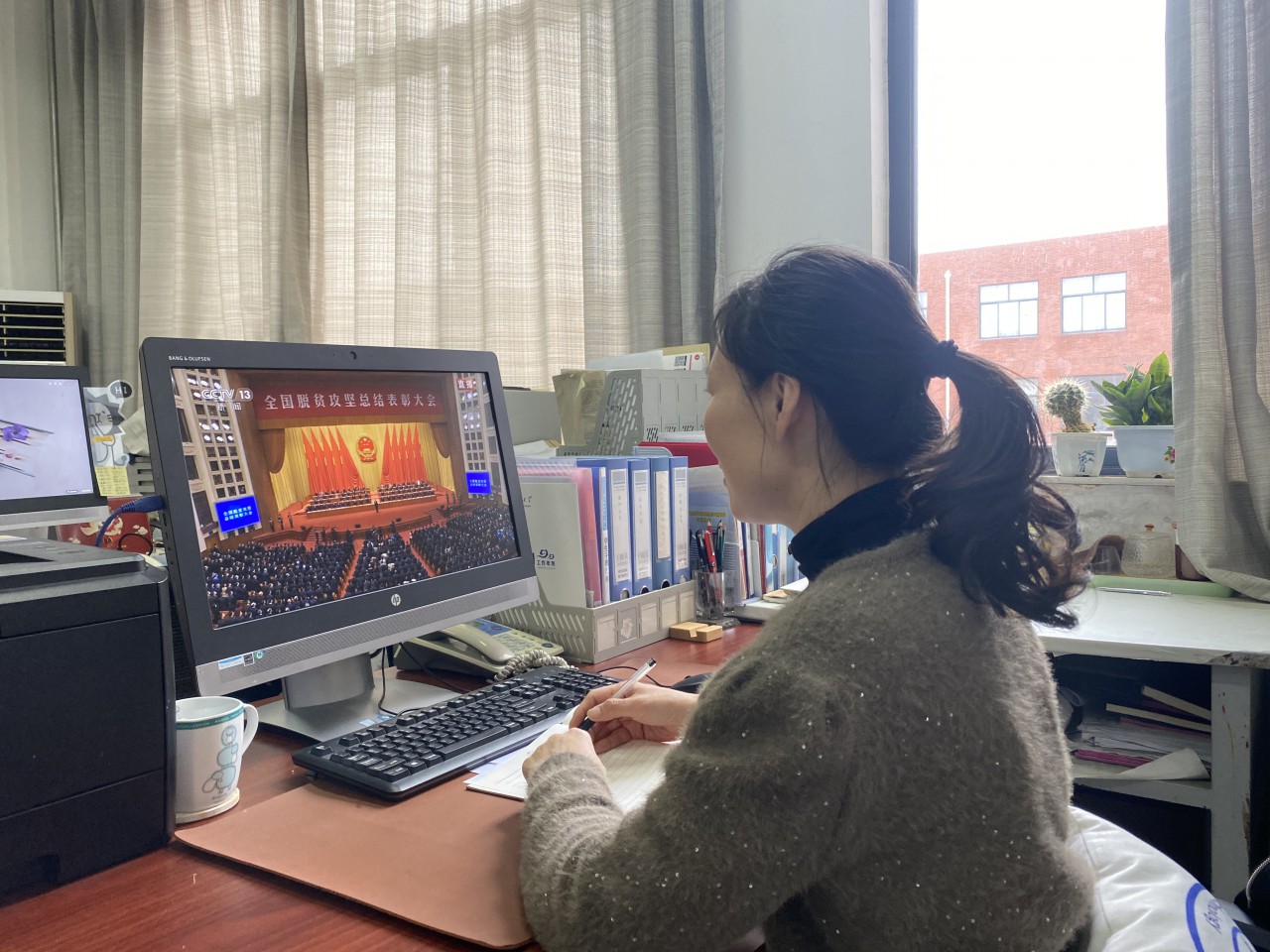 直播过程中,大家聚精会神、仔细聆听习近平总书记重要讲话内容,感受祖国巨大发展变化,致敬攻坚克难奋斗一线的扶贫干部。直播结束后,大家畅谈收看感受,撰写学习心得,纷纷表示习近平总书记的重要讲话,催人奋进、鼓舞人心,向全世界宣告我国脱贫攻坚战取得了全面胜利。在今后工作中,将大力弘扬脱贫攻坚精神,进一步牢固增强“四个意识”、坚定“四个自信”、做到“两个维护”,以永不懈怠的精神状态,真抓实干、埋头苦干,为全面开启“十四五”发展新征程、奋力谱写现代化建设新篇章,贡献科大艺术学子的智慧和力量。(通讯员:王钰淇、谭启轲)