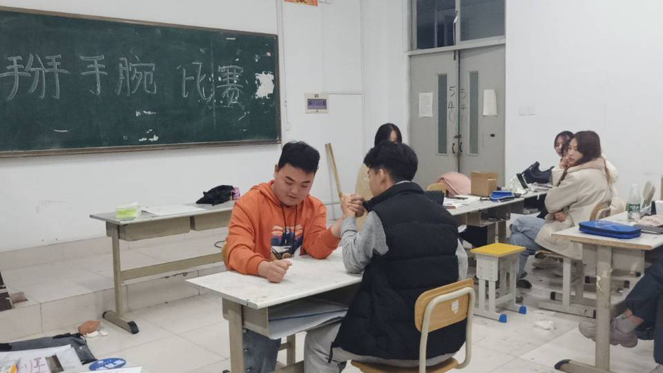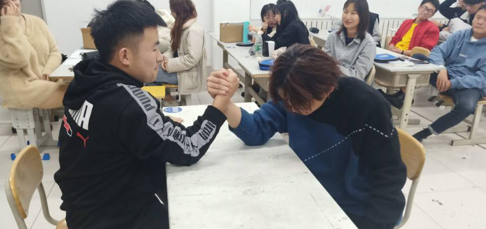 为了丰富校园文化生活,缓解学习压力,增强员工坚持与竞争意识,11月17日晚上于J14-504教室,申博sunbet员工会素质拓展部承办的“比拼激扬梦想,较量磨砺锋芒”掰手腕大赛火热开赛。