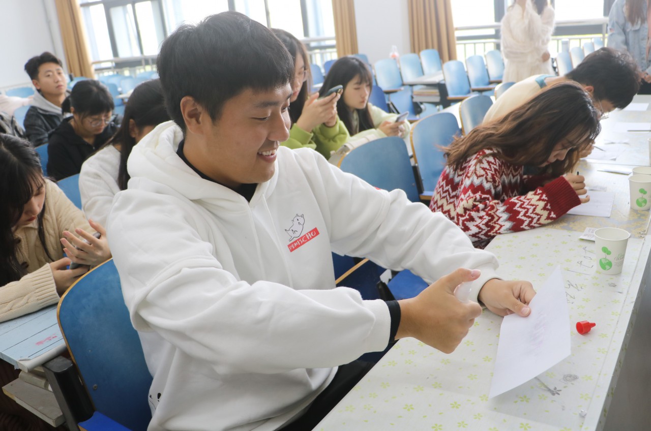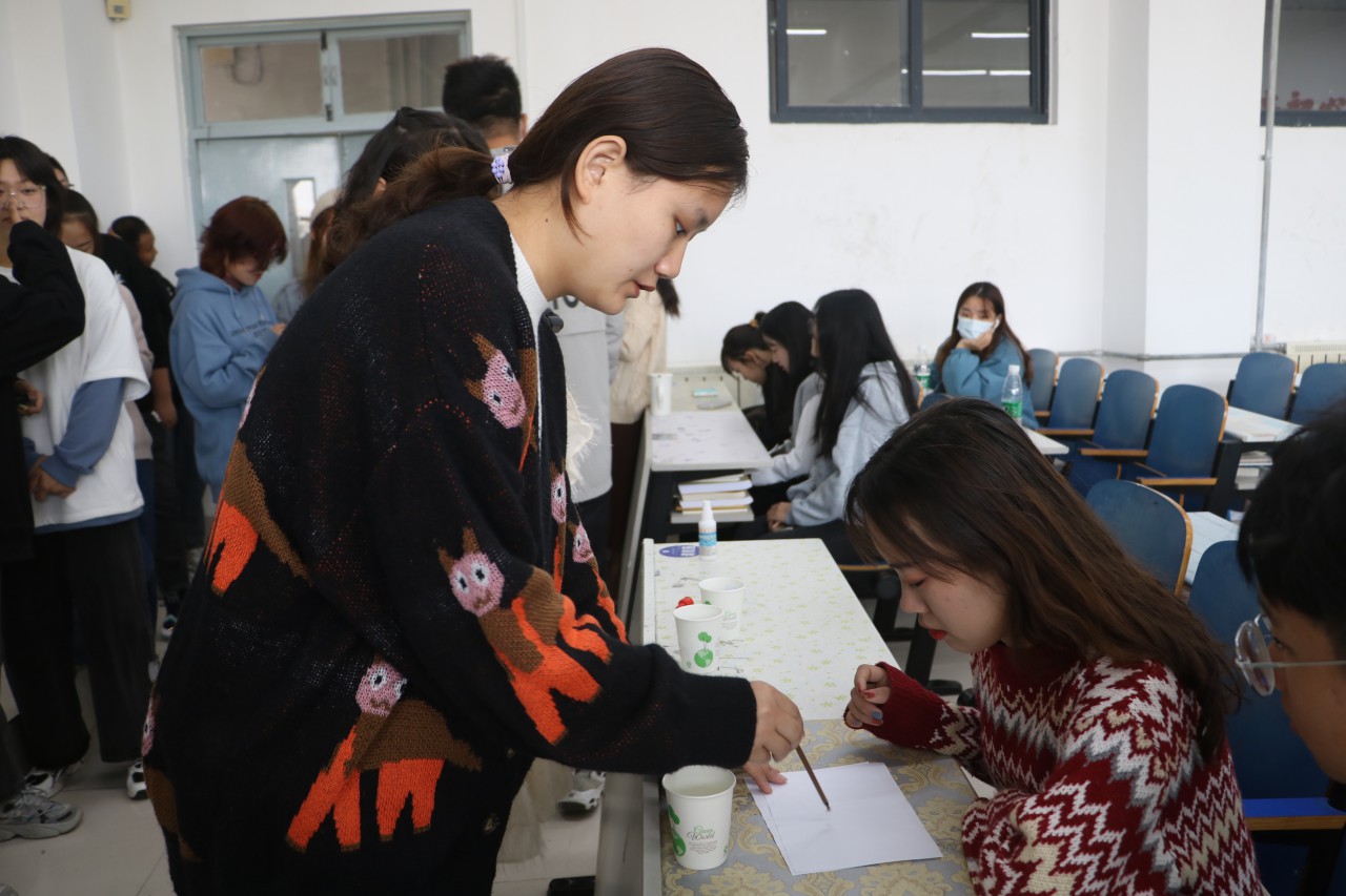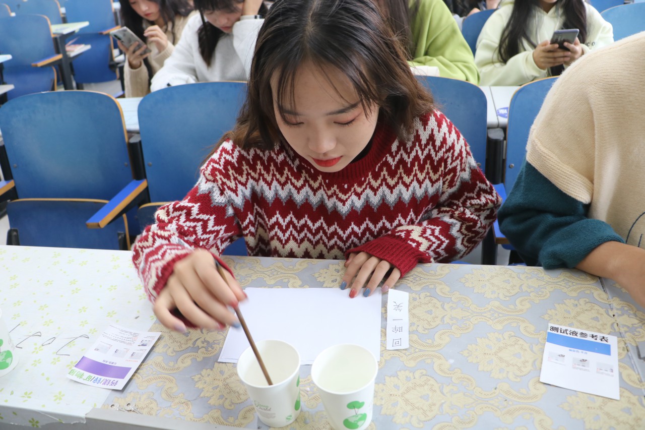 此次活动采用化学实验的方式,通过酚酞与小苏打的化学反应完成看图识画的游戏。同学们四人一组,游戏过程中同学通过辨认被酚酞试剂染成红色的图案,争分夺秒竞猜词语,现场欢笑声不断。同学们纷纷表示受益匪浅,有趣的实验游戏激发同学们求知与探寻科学奥秘的欲望,在游戏中学习科学知识,将科学的理性探索与艺术对美的感性认识巧妙结合,从画中了解科学,从科学中发现美。