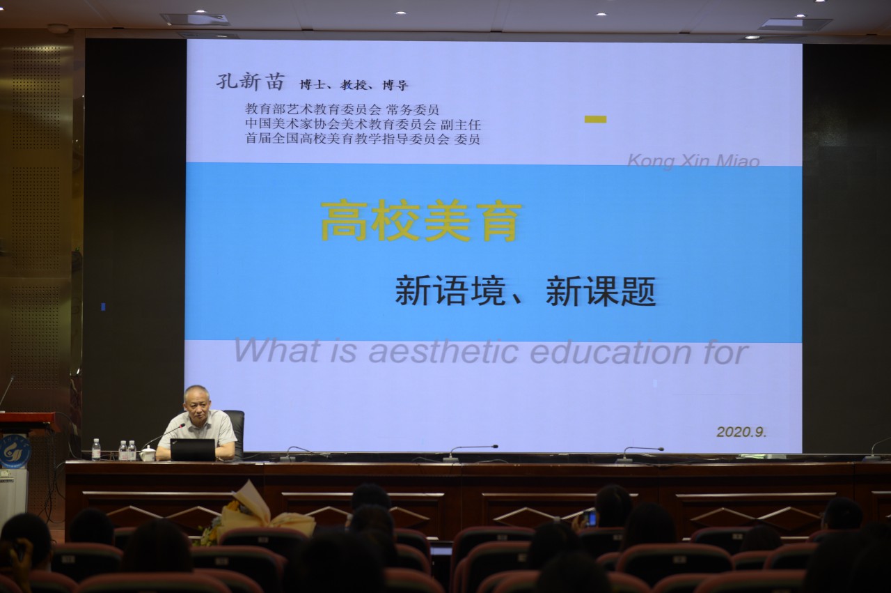山东师范大学教授、全国高校美育教学指导委员会委员孔新苗教授以《高校美育-新语境,新课题》为题作了精彩的讲座。本次讲座主要分为三个方面进行分享,首先是“美育”在不同历史阶段的含义;其次是“美育”在当下所面临的新语境和新课题;再次是探索“美育”新模式、新经验。孔教授的讲座内容丰富多彩,语言生动,善于启发,其个人魅力深深地折服了在场的老师和员工。最后,在场的师生与孔教授进行了积极的现场交流,反响热烈。