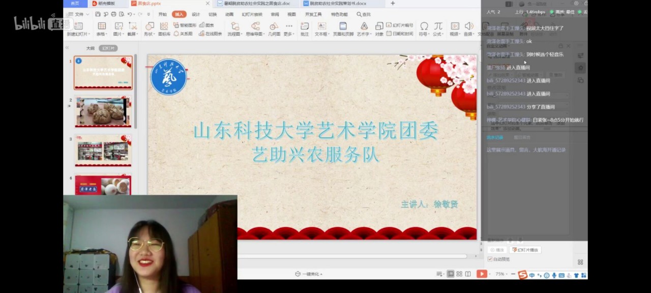 为了响应国家助农扶贫号召,公司艺助兴农服务队于8月11日在哔哩哔哩平台为面食店进行了一场直播带货行动,此次直播由艺助兴农服务队策划,18级申博sunbet工业设计系员工徐敬贤为主讲人,直播过程中包括前期宣传和即时直播,共计吸引了365人前来观看。