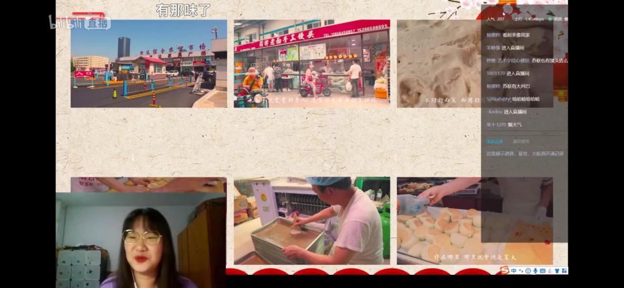 此次直播带货环节,全程通过网络直播、即时下单的方式进行,直播伊始,主讲人经简单而亲切的开场后,用照片和一段视频向观众们展现了面食店内的场景,观众可以直观地看到店内馒头以及各类面食的制作过程。接下来,主讲人逐渐切入正题,详细地向观众展示店内的主打产品和特色产品:老面馒头、枣花馒头、烧烤饼等,结合当下直播带货的特点,主讲人采用试吃加解说的方式,真真切切地为观众呈现产品最真实的口感和特色。对于像枣花馒头这样具有代表性的产品,主讲人也结合产品本身的营养价值和养生功效,对其做出了全面推荐。直播过程中主讲人与观众进行了积极的互动,及时回答了观众提出的问题,问答过程也是对产品的再展示,直接明了地向观众传递出产品安全健康的宗旨,提升观众参与感的同时也宣传了产品。直播最后,主讲人为观众提供下单的二维码,销售通道得以开启,至此,直播带货圆满成功。