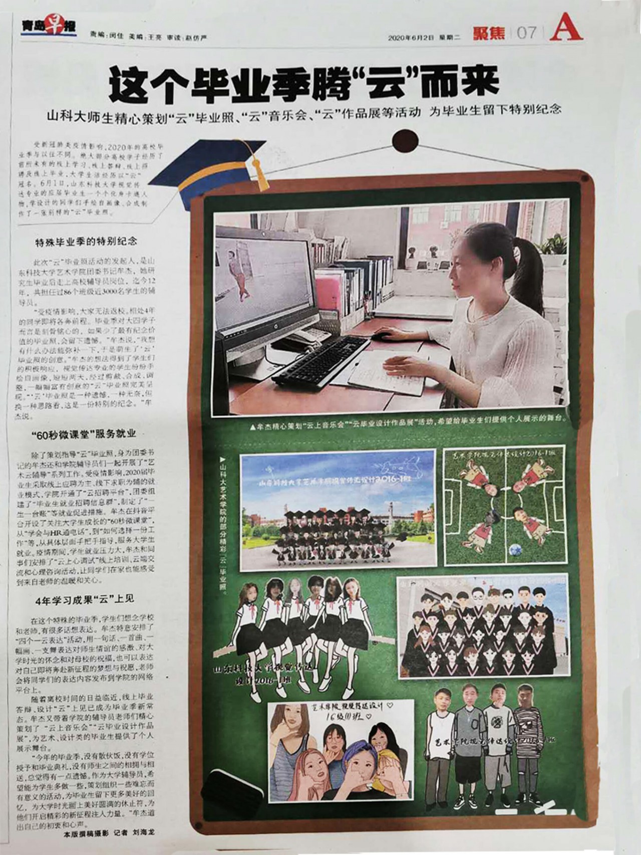 活动开展以来,收到良好的教育效果,受到同学们的广泛认可,也得到了报纸、电视、网媒等多家主流宣传媒体的高度关注。《青岛早报》 《新华网》 《大众网》 《今日头条网》 《半岛网》 《腾讯网》 《网易》 《青岛西海岸新闻网》 《信网》 《封面新闻》 等10多家媒体均在第一时间对这个特殊的“云”毕业季活动进行了宣传报道,青岛西海岸新区教育和体育局官方公众号对相关活动进行了转载报道。(通讯:韩铠阳)