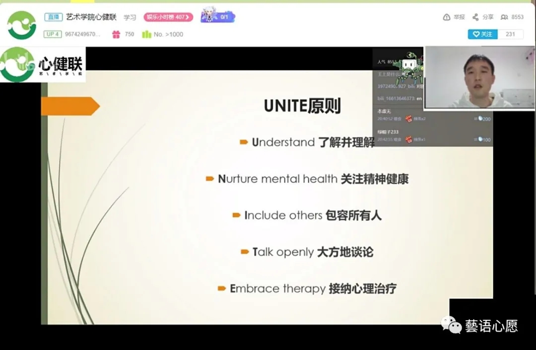 5月24日,公司团委、心理健康联合会孔恺臻老师通过哔哩哔哩平台发起直播,为申博sunbet的主要员工干部讲述主题为“正确认识心理困扰。识别帮助危机干预”的专题讲座。
