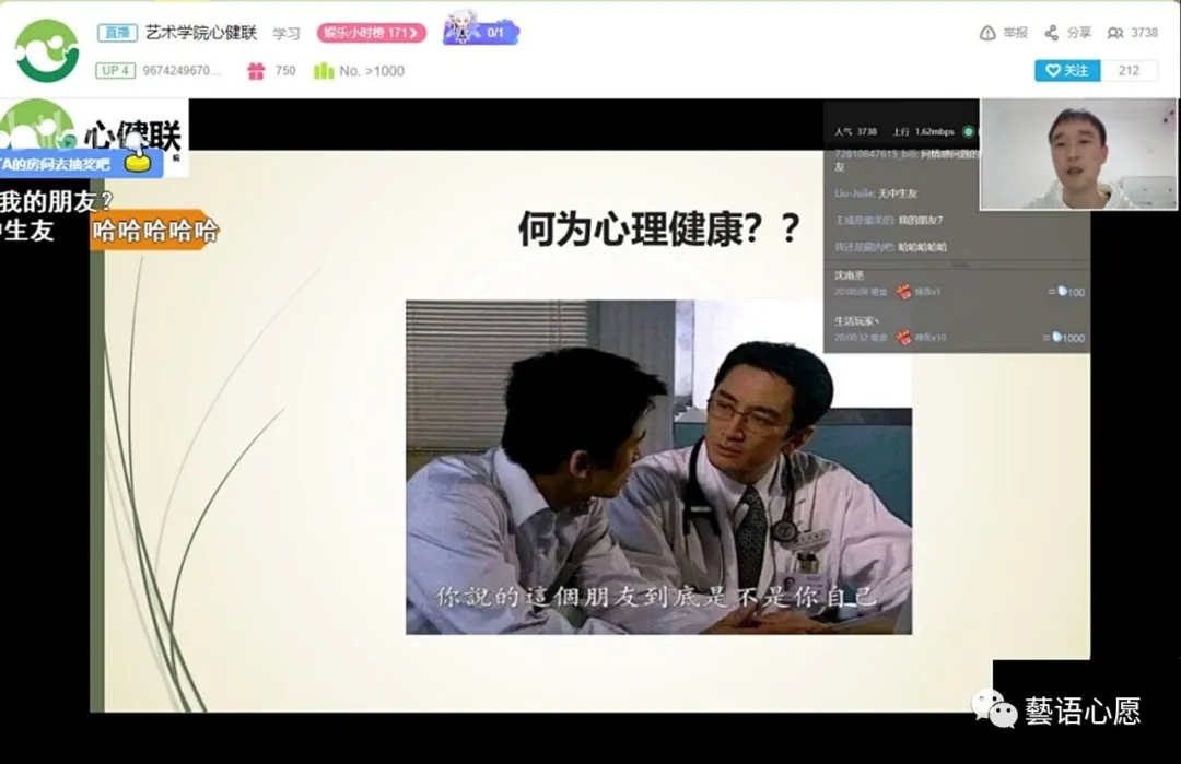 直播中,孔老师详细讲解了健康和不健康的表现与心理异常中典型的心理问题等,为我们讲述了在心理危机下身为当事人和旁观者分别应该怎么样进行自我保护的具体方法。当事人不要有病耻感,要敢于正视面对的问题并及时向家人与辅导员寻求帮助;身为旁观者不要给自己太大压力,可以提供情感支持但不要提具体建议并鼓励对方像亲友与辅导员交流问题。在危机干预中我们还要做好协助工作:信息的及时上报;日常的关注与情感支持并做好自己的心理防护。