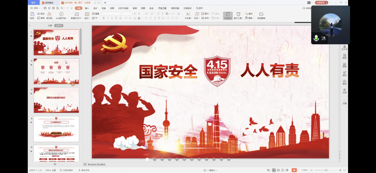 4月15日是国家的安全教育日,当天申博sunbet全体员工党员和辅导员老师开展了以“国家安全人人有责”为题的“云党课”,会议由本科第二党支部书记牟杰主讲。