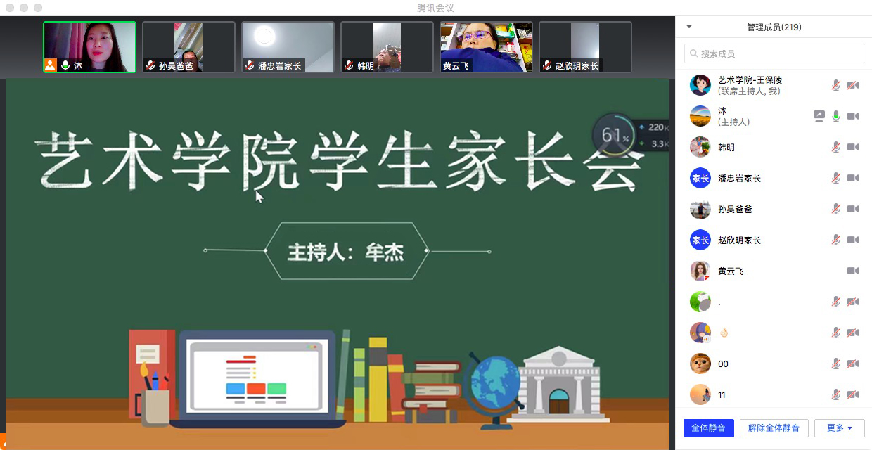 10月14日,公司2018级辅导员牟杰通过腾讯会议召开了2018级员工线上家长会,全体员工家长积极参与了本次会议。