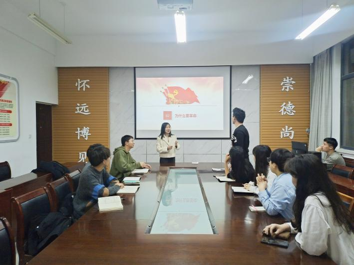 宣讲会伊始,牟杰老师从什么是中国共产党、为什么要革命、中国共产党的初心和使命和争做有为的新时代老员工四个大方面围绕“传承红色基因,坚定理想信念”这一主题向大家进行宣讲。随后,牟杰老师组织参会同学观看有关主题的视频,带领大家加强对中国共产党的有关知识进行学习和了解,引导同学们应该始终坚持中国共产党的领导,学习党的初心和使命,争做有为的新时代老员工。最后,同学们积极讨论了应该如何争做有为的新时代老员工,并制定了相应计划,学习中国共产党的精神,争做有为的新时代中国青年、新时代老员工。