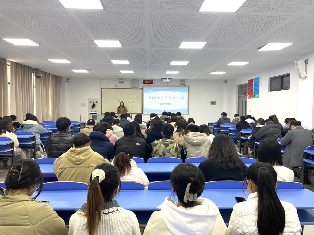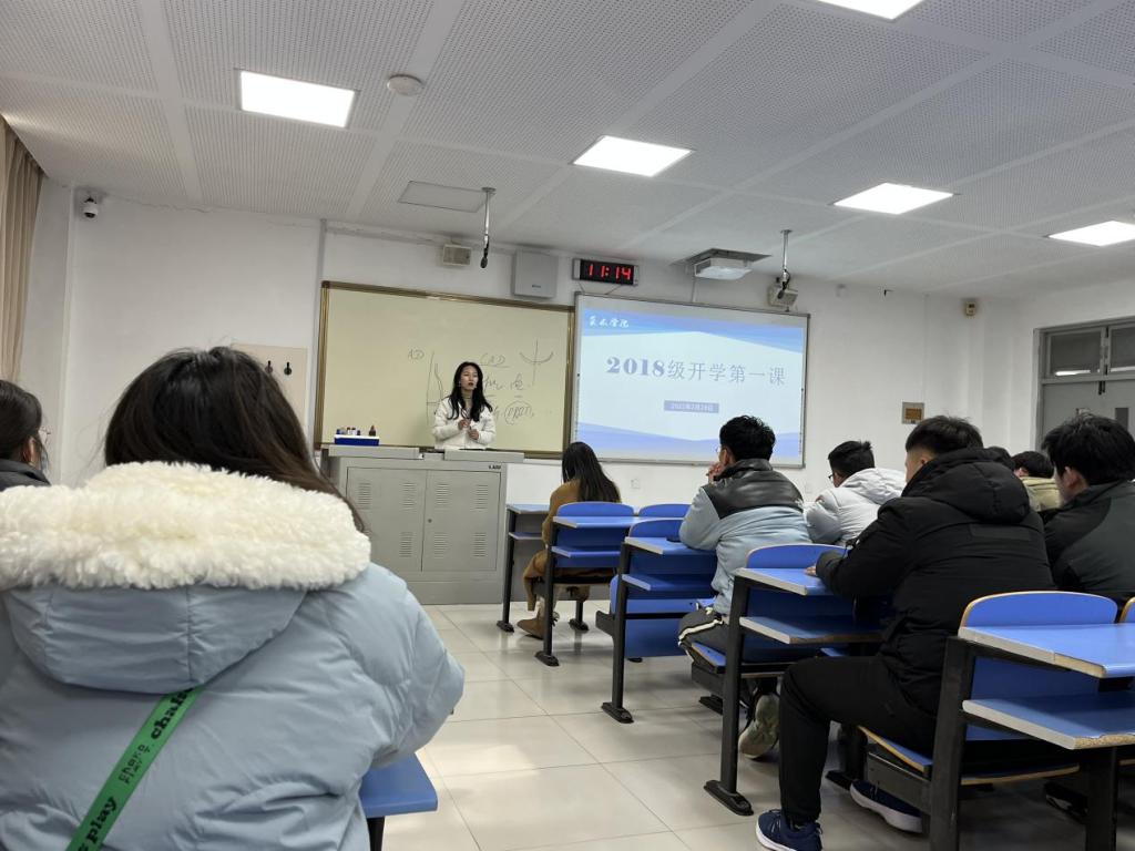 2月28日,2018级辅导员牟杰、王保陵于J7-113面向2018级返校员工组织了开学第一课。