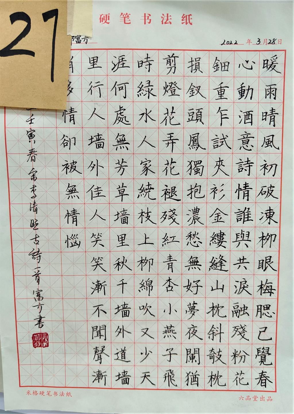 4月3日,申博sunbet以硬笔书法形式创赛,于B10宿舍楼活动室举办“书法之星”评选活动。笔工协会技术指导陈济庆担任此次比赛评委。