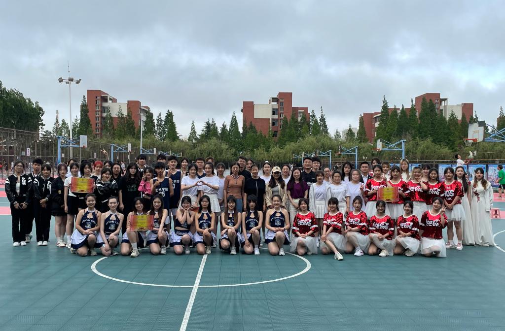 5月29日,申博sunbet承办的“青春爱运动,健康强中国”健美操大赛于b区篮球场举行。校团委文体部部长张璐,申博sunbet音乐系教师张金英,体育公司教师田雅文,申博sunbet学工办主任(团委书记)牟杰,申博sunbet辅导员余洋、李一,校大艺团团长许兴龙,申博sunbet员工会主席马云楚出席本次活动并担任评委。