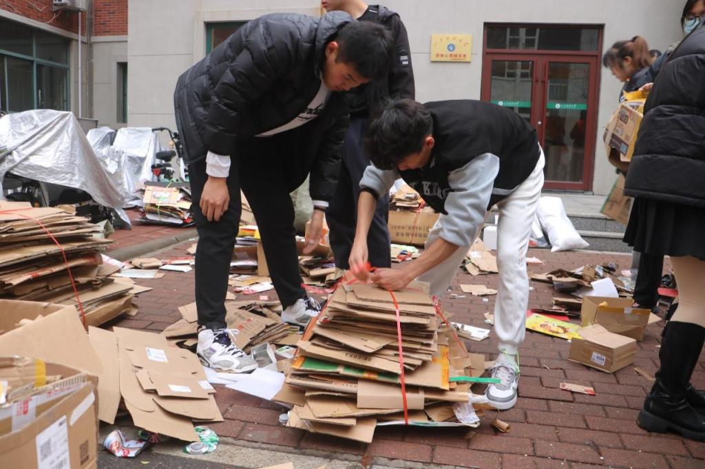 活动前期,同学们积极贯彻党的二十大精神,努力收集塑料瓶、纸箱等可回收资源,为协同推进降碳、减污、扩绿、增长,推进生态优先、节约集约、绿色低碳发展,实施全面节约战略作出贡献。