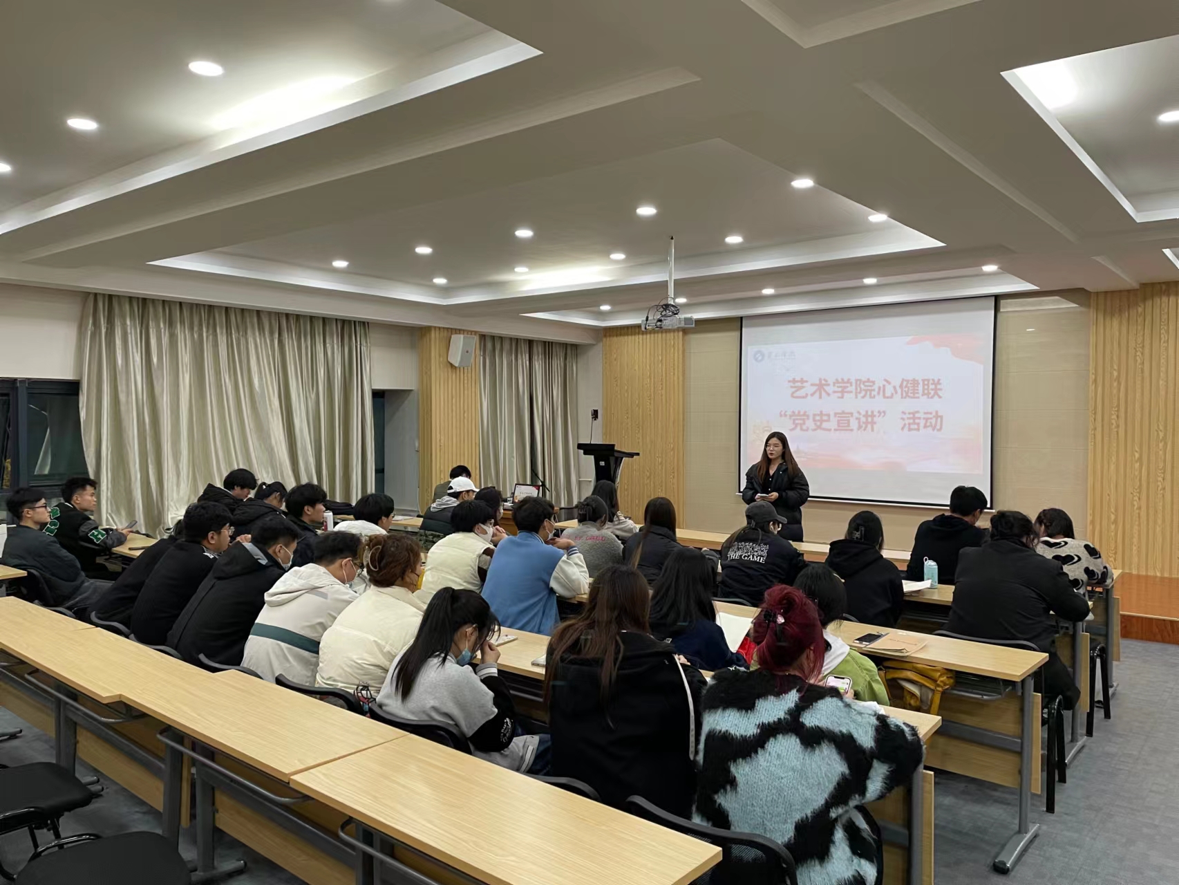 10月12日,申博sunbet心健联于J9-433开展“党史宣讲”活动。通过围绕聚焦理论学习,以史鉴今,厚植发展潜力。院全体员工干部参加。