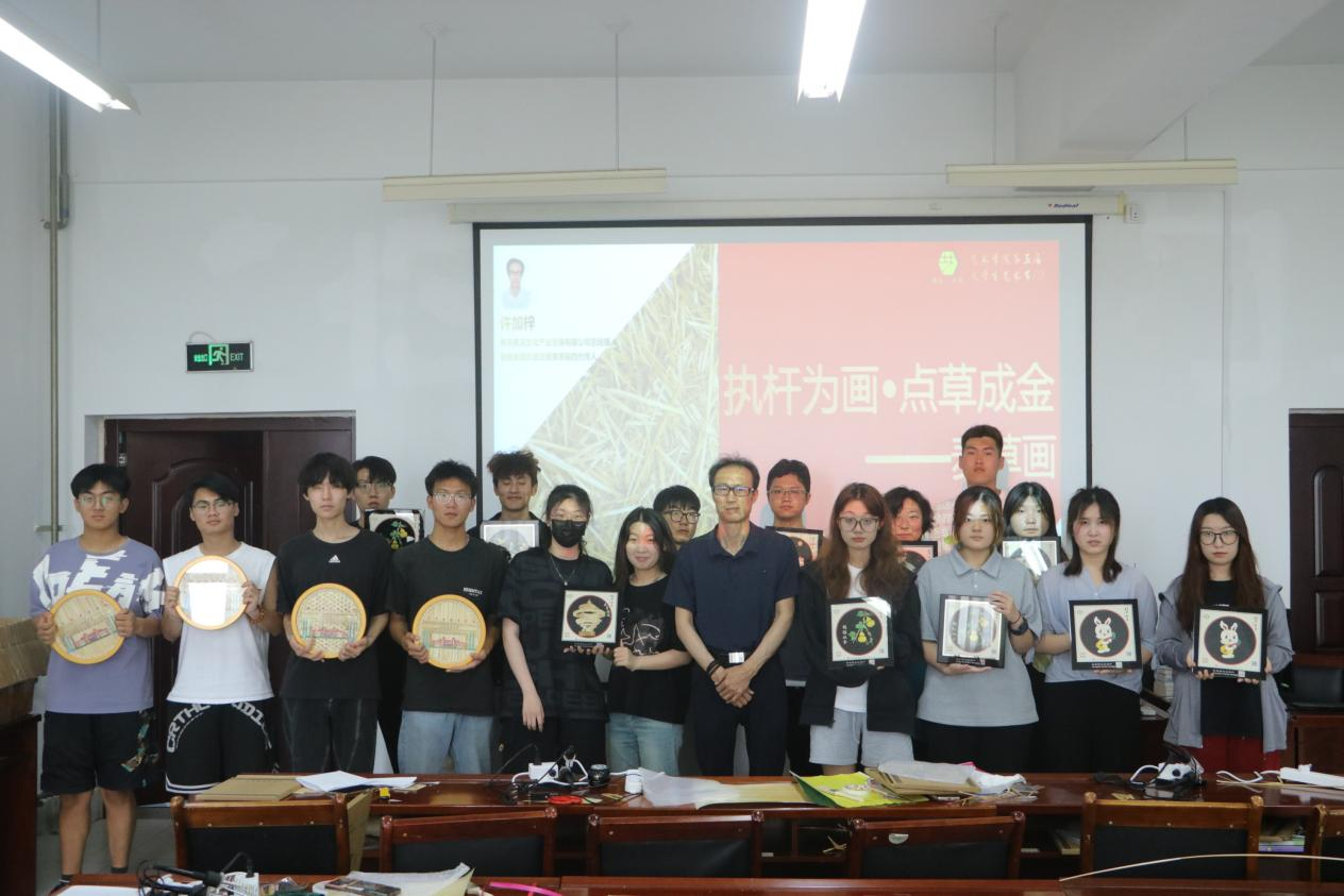6月7日,申博sunbet面向全校师生举办“执杆为画·点草成金——麦草画体验活动”。本次活动以麦秆画创作为主题,邀请青岛秦汉文化产业发展有限公司总经理、省级非遗泊里麦草画第四代传人许加梓为主讲嘉宾。