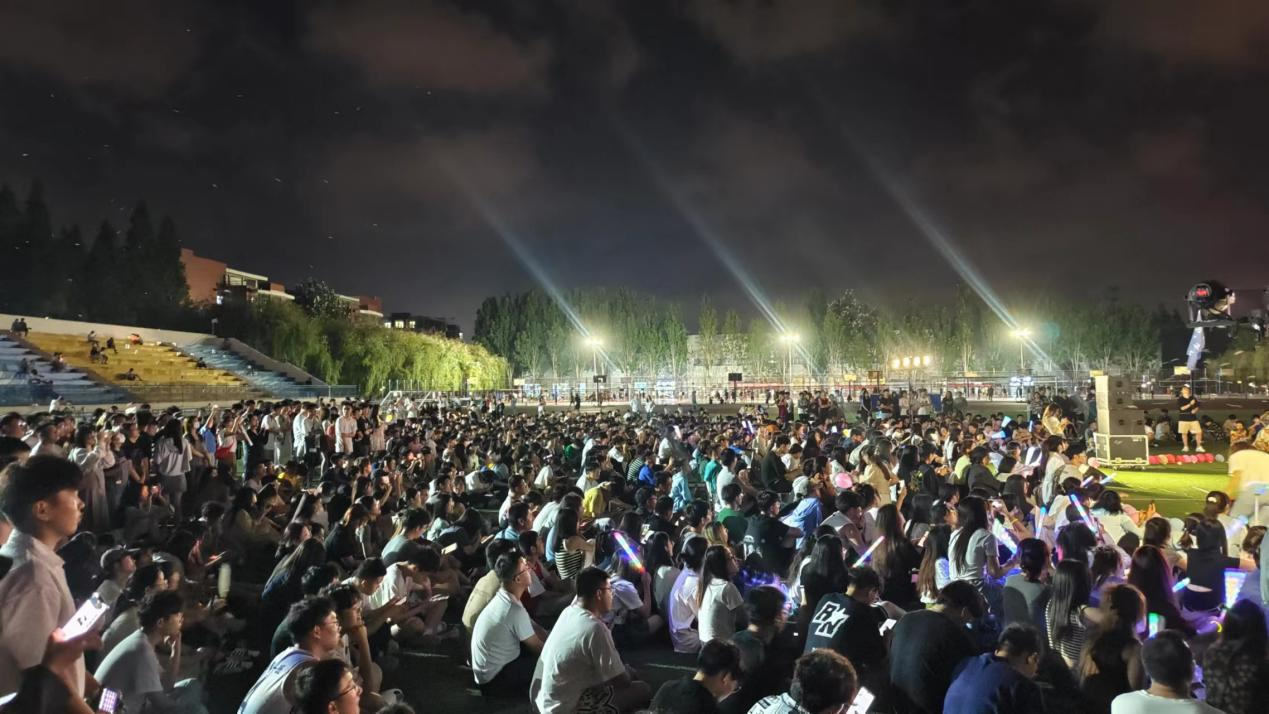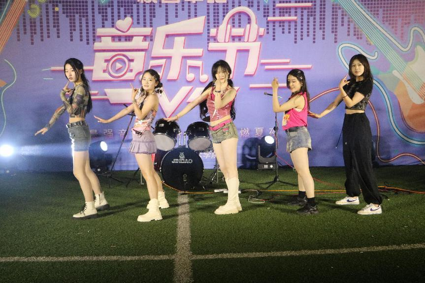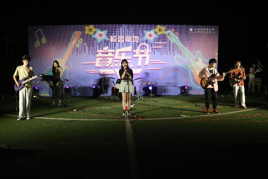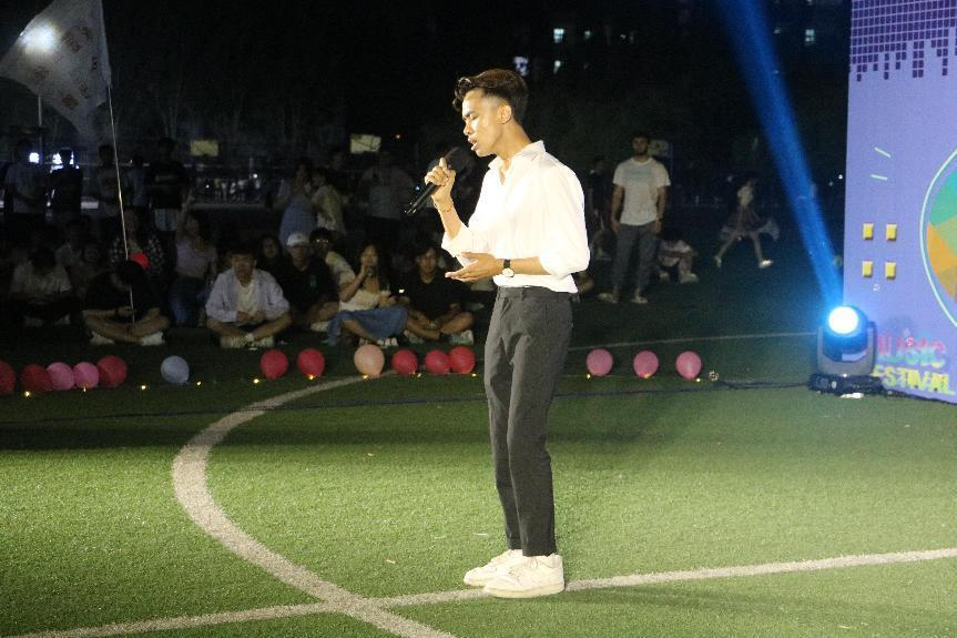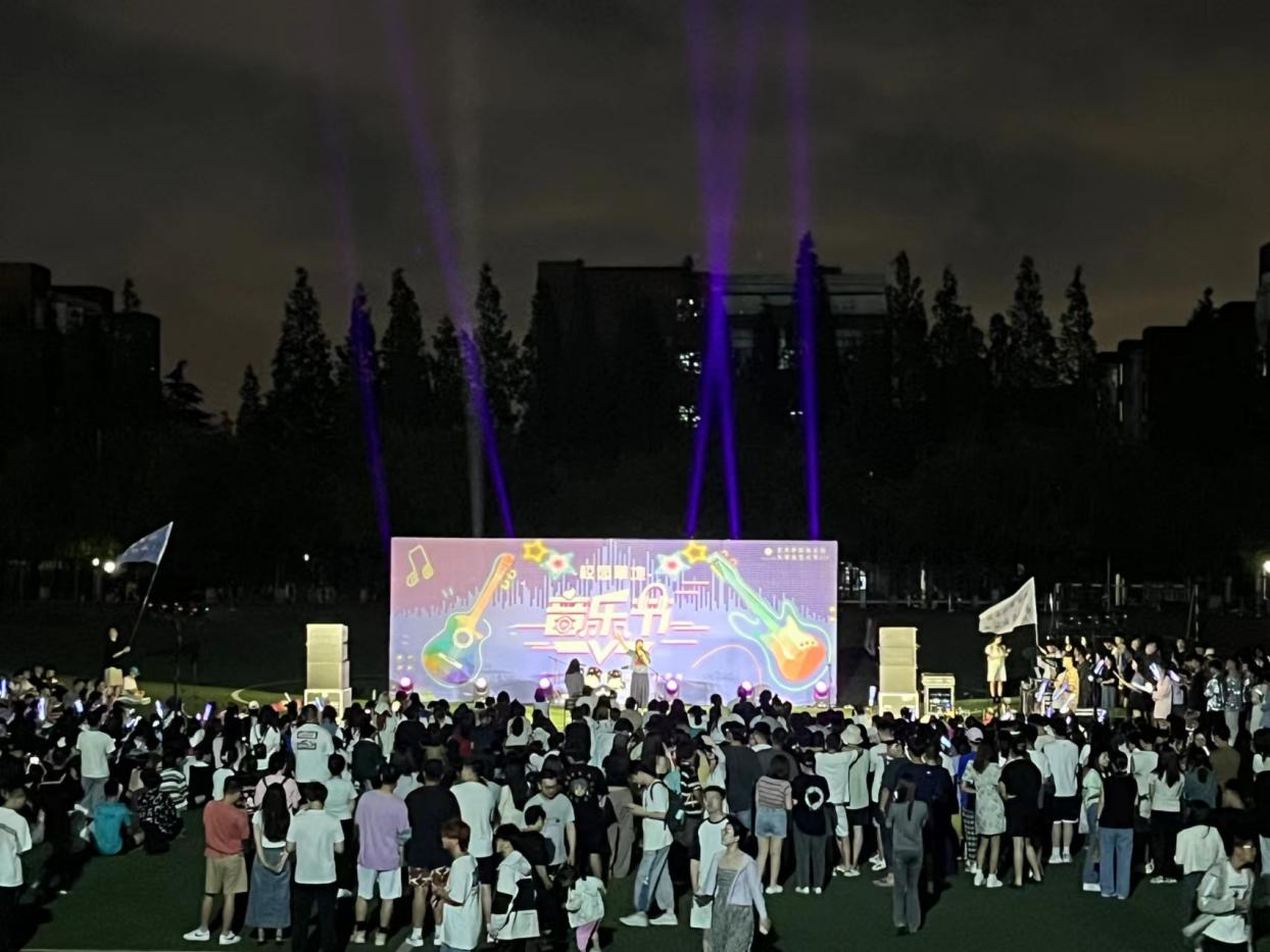 一首器乐演奏《起风了》在温柔的暮色中,正式拉开音乐节的帷幕。乐队带来的《日不落》、《违背的青春》再次将今夜的气氛推向最高潮;在歌曲《想你的夜》中,歌手用澎湃的激情向音乐致敬,向青春致敬;歌曲《呼吸决定》诉说着爱恋中的复杂情感;歌曲《后来》中歌手的厚重嗓音让人沉溺,不断涌起温暖坚定的力量;热辣劲舞《Queencard》,跟随动感的音乐,舞姿轻灵彰显青春的活力和生命的张力……一首首耳熟能详的经典金曲从操场上传遍了整个校园。演出在一首摇滚《现在,现在》中落幕,婉转的歌声悠荡耳旁,挥舞的荧光棒汇成星光海洋,灯光和音乐交相辉映,在盛夏之夜给同学们带来了一场视听盛宴。