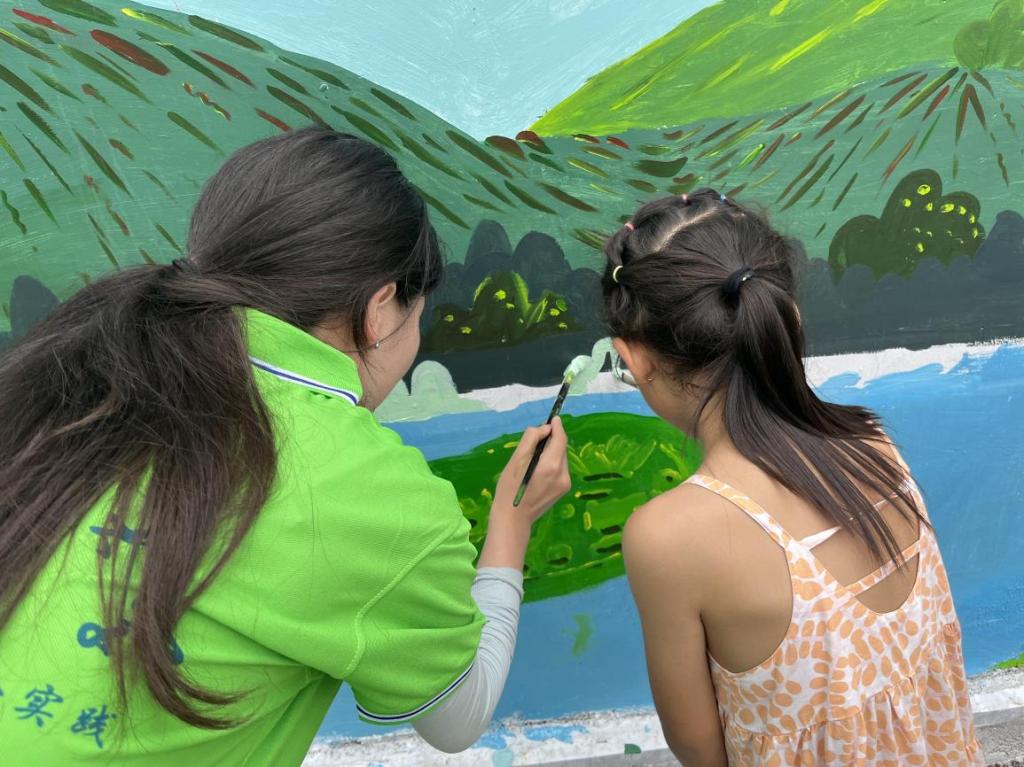 志愿始于心,奉献在于行,乡村振兴,行胜致远。志愿者们用画笔描绘着美丽的尚庄三村,此次墙绘地点是在尚庄三村一条村民必经的大路旁,墙面上连绵起伏的青山吸引了路人的驻足,一个个彰显李庄竹编文化的竹篮也在墙面上出现,志愿者们用绘画的方式弘扬了李庄镇竹编文化的非遗传承,将传统文化与乡村振兴结合起来,共同推动党的文化与政治建设。他们不惧烈日骄阳,充分发挥丰富的想象力和创造力,为白墙穿上了图文并茂的“彩衣”,让乡村文化墙成为“发言”的宣传员,宣扬李庄振兴新景图。这些绘画也吸引了许多孩童与村民的围观,在绘画过程中志愿者们把画笔给了前来围观的孩子们,让他们参与到绘画的乐趣中来,遇到驻足的村民询问,志愿者们会耐心讲解其中绘画的含义,有效地响应了党的建设与乡村振兴两大主题,让志愿者们切身的投入到美丽乡村的建设中去,为日后更多的下乡实践积累更多的宝贵经验,用艺术点亮乡村振兴。
