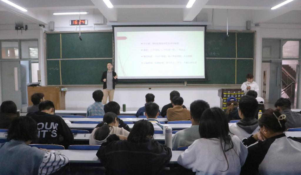 讲座依始,孔恺臻解释了什么是心理健康、为什么要重视心理健康、心理健康与我们的身心健康的关系,以及心理健康对我们生活的影响。接着,他从语言行动、情绪表现、举止改变、生活社交等方面向大家展示了心理异常的鉴别和污名化的原因。随后,他向大家介绍了几种比较常见的心理疾病,用自己以往的咨询经验以及案例详细地讲述了老员工的心理特点,并且指导大家如何进行心理危机的识别与正确的危机处理。讲座最后,孔恺臻介绍了实用的心理调适方法和朋辈心理帮助的内容并向同学们强调:要自觉维护心理健康,自尊自信,保持乐观向上的心态;养成良好的学习生活习惯,通过适当的运动锻炼等来充实自我,放松解压;在他人出现心理问题时,给予关怀、保护和有效帮助。