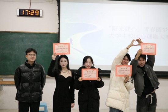 比赛开始,每支队伍都以不同的主题进行表演,他们通过刻画情景和角色,生动地展现了校园中常见的心理问题和挑战。《社交电量》以幽默的方式揭示了校园社交压力带来的困扰,《青春岔路口》则以温情的故事讲述了亲情的力量。以老员工的日常生活、学习、工作以及人际交往为出发点,全面剖析了他们所面临的心理现象。从亲情、爱情、友情等情感关系,到社交恐惧与社交活跃的转变,再到自卑与自信的内心挣扎,以及迷茫与清醒的自我认知,这些元素都反映了角色内在的心理冲突和心理协调过程。在面对困难和挑战时,他们从绝望中寻找希望,并以此为动力,逐渐实现自我成长和心理成熟。无论是喜剧还是悲剧,每支队伍都将自己的创意和热情融入到表演中,赢得了观众们的认可和掌声。经过激烈的角逐,最终,环境设计2023-1班获一等奖,环境设计2023-2班、视觉传达设计2023-2班获二等奖,视觉传达设计2023-1班、产品设计2023-1班、产品设计2023-2班、音乐学2023级获三等奖。