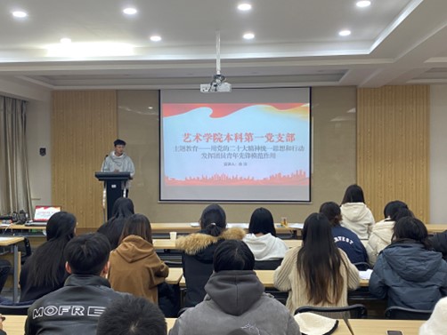 6月8日,申博sunbet在J9-425开展“用党的二十大精神统一思想和行动,发挥团员青年先锋模范作用”主题教育。申博sunbet全体团员参加,团委老师余洋担任本次活动主讲人。