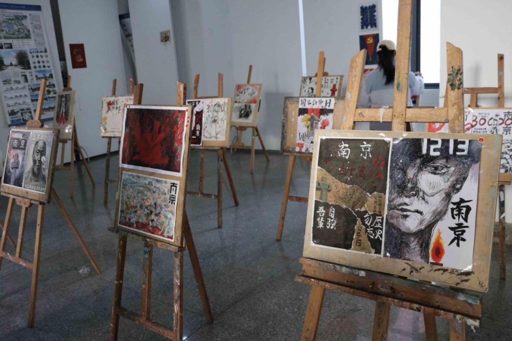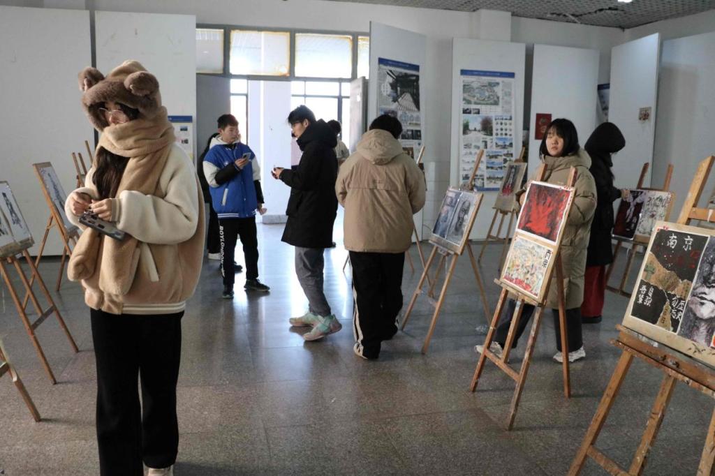 展览中,同学们通过手绘的形式,以生动的画面和鲜明的色彩,重现了那段令人心痛的历史。通过这些作品,我们看到了南京大屠杀的惨状,那些无辜生命如何在绝境中奋起抵抗;看到了中国人民无论面对多大的困难和挫折,都不放弃斗争,坚持到底的决心。其中,环境设计2023-1班的张静姝同学将南京大屠杀纪念碑与被刺伤喉咙的儿童形象组合,通过鲜明的色彩,表达南京大屠杀的惨烈,用醒目的文字警醒同学们勿忘国耻、吾辈当自强。本次绘画作品通过观众投票形式决出排名,视觉传达设计2023-1班刘瑾、环境设计2023-1班张静姝同学获一等奖;视觉传达设计2023-2班陈红、韩泽国、环境设计2023-1班祝雨彤同学获二等奖;产品设计2023-1班李强、环境设计2023-1班韩昊辰、产品设计2023-2班韩欣菀、环境设计2023-2班张佳悦、视觉传达设计2023-2班刘静同学获三等奖。