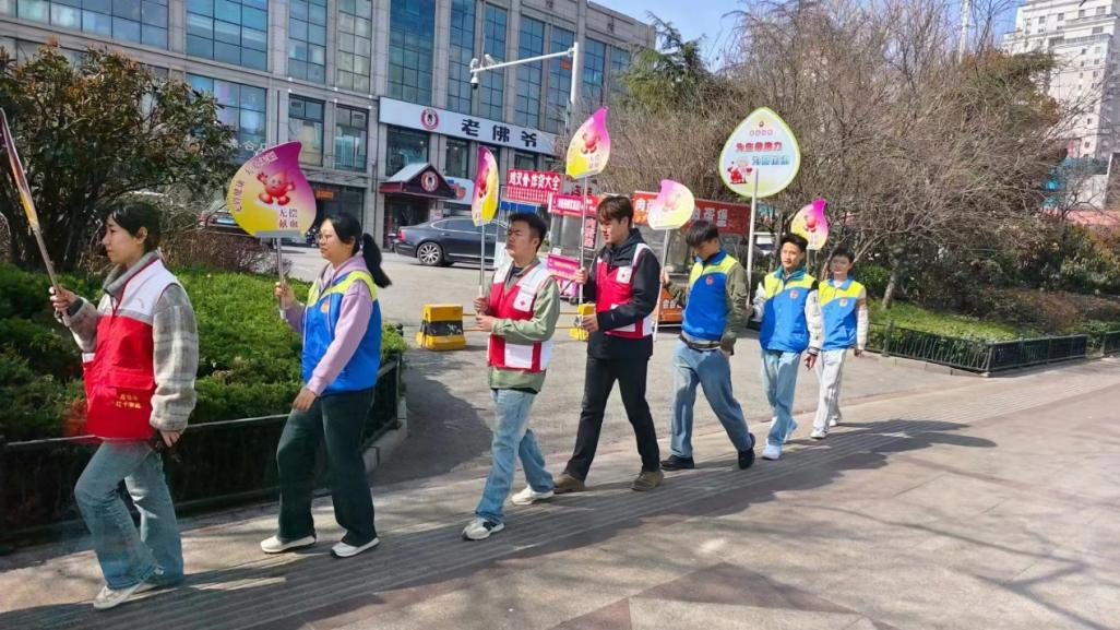 3月23日,申博sunbet志愿实践部于黄岛区香江路献血屋进行爱心献血志愿宣传活动,向广大市民普及献血知识,鼓励更多的人爱心献血。
