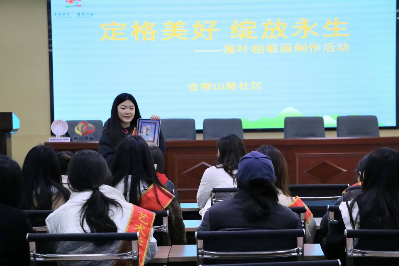 活动开始前,志愿者们为社区居民讲解落叶相框画的制作步骤和技巧并为大家发放手工材料。随后,大家迫不及待地开始挑选自己喜欢的落叶,在志愿者的引导下,大家依次进行了裁剪落叶、设计图案等工序,并结合自己的想象力,以剪贴、绘画、装饰等多种形式,将落叶变成了一幅幅富有创意的作品。有的就是一片简简单单的叶子,自然安静的躺在相框里,像是在诉说大自然的故事;有的是用几片树叶组成,层层叠叠,似乎寓意了生命的蓬勃和延展……大家完成了自己的作品,还饶有兴致的欣赏别人的“大作”,现场气氛温馨而热烈。“既留住了落叶的美,又能成为家中别致的摆设,这样的活动太有意义了”其中一位社区居民激动的说道。志愿者们也表示希望能够参加更多这样的志愿活动,为更多的人带来欢乐和幸福。